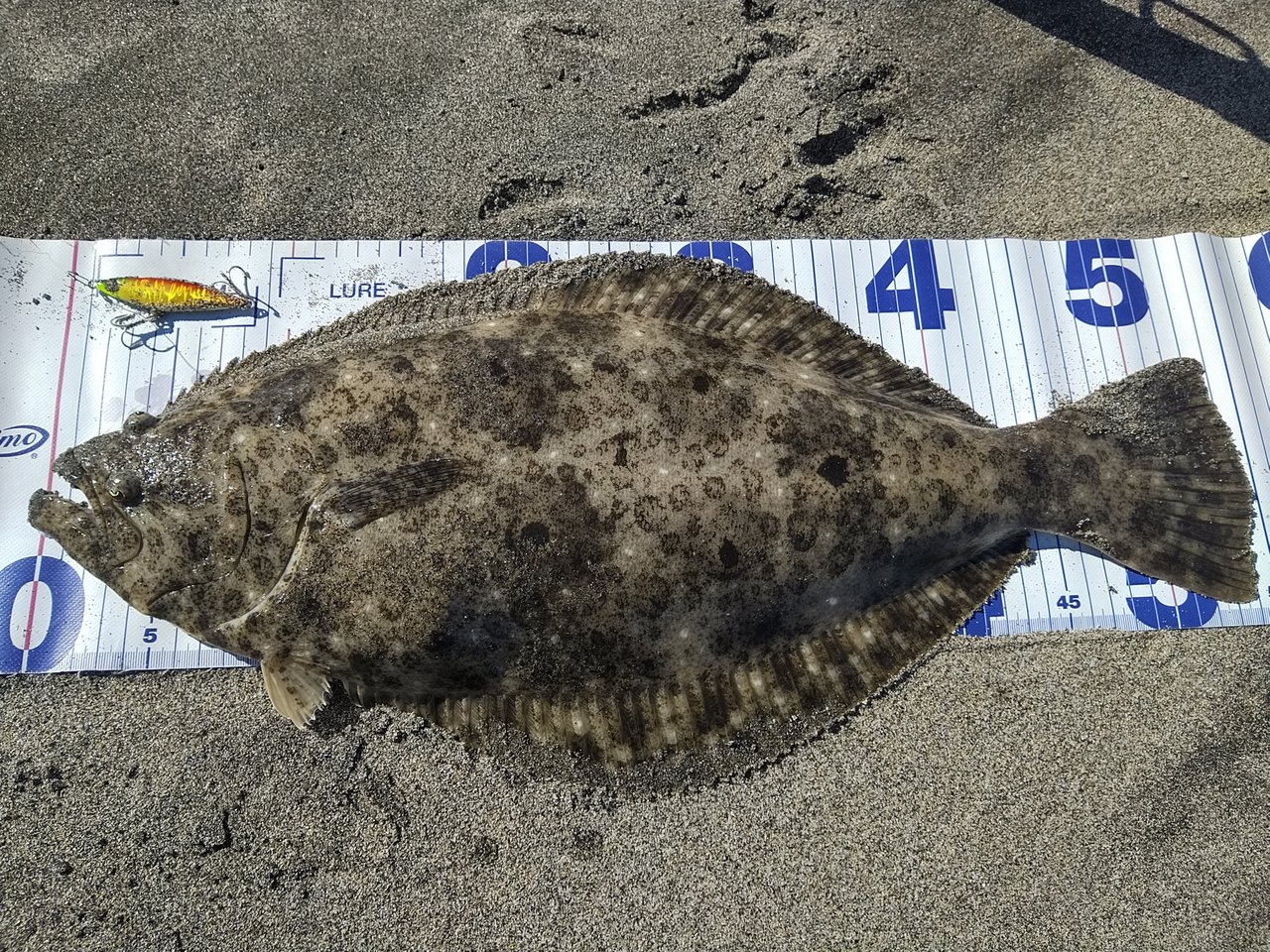 こんにちは泉バイパス店石川です!久しぶりに朝一でのサーフインです。ワンドの掘れているポイントにてミノーを通していると、ファーストブレイクでヒット!かわいいサイズのヒラメさんでした(^^)追加が無かったので次のワンドにて手前でヒット!ちょっとサイズアップのヒラメさんでした(^^)その後もランガンしながら粘りましたが、カレイを追加して終了となりました。引き続きサーフ好調を維持しているようです。今後はサイズアップに期待したいと思います!