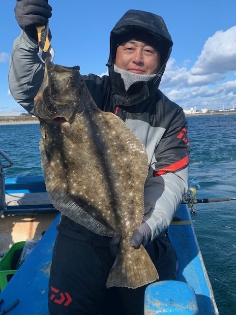 予報では風があり良い釣りができると思っていたのですが風が弱く潮もあまり動いていないという横流しの釣りには最悪な状態での始まりでしたが少しずつ風と潮が動き何とか大きいヒラメを釣ることができました。今年は良い釣りができそうな一年になりそうです。