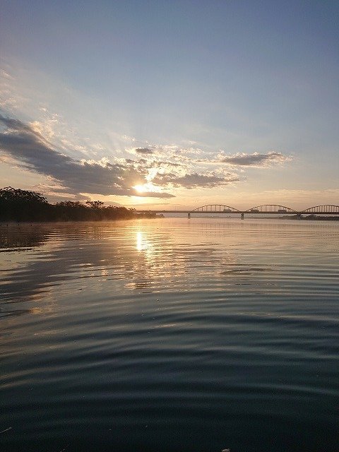 当日暗いうちに到着して準備中にビックリ!ボート屋さんの前が通称アオヤロウに埋め尽くされている・・・川筋に行くか本湖に行くかで迷っていましたが濁っていたのでこれは1発狙いで川筋のカバー狙いでしょ!ということでスタートして上流にGO!