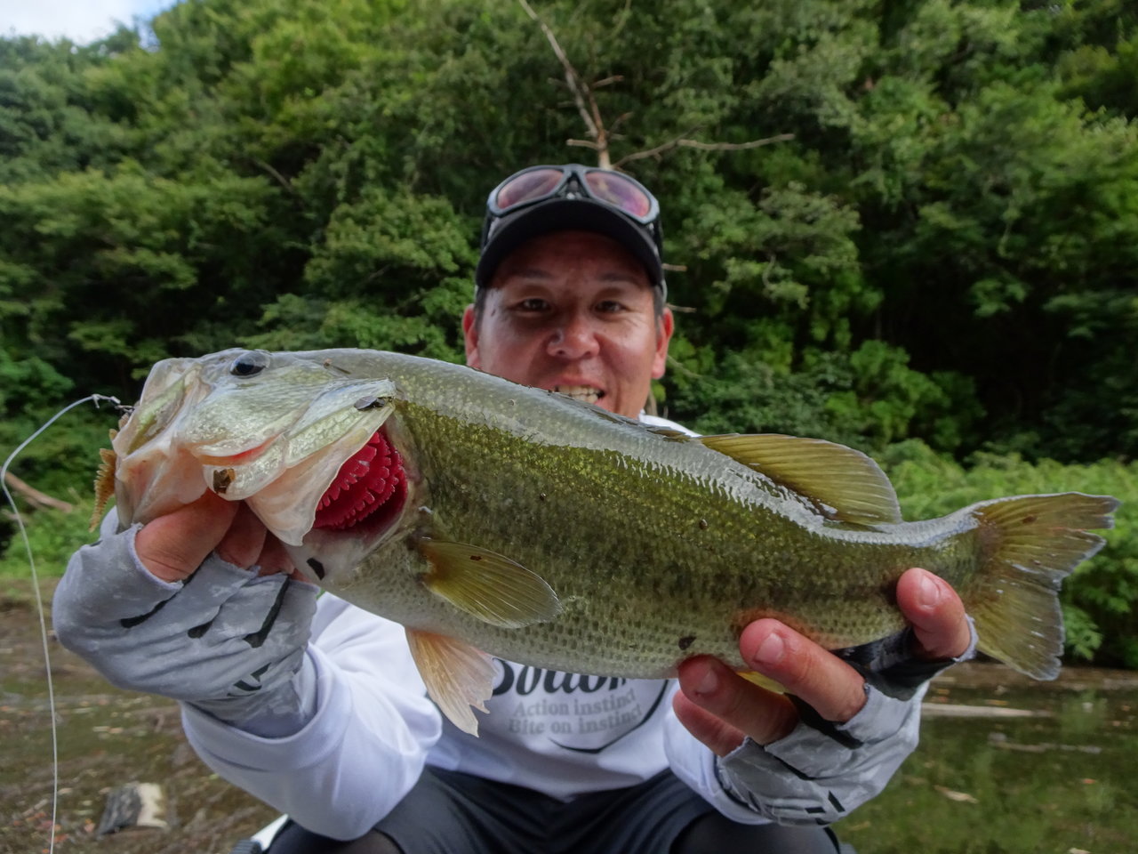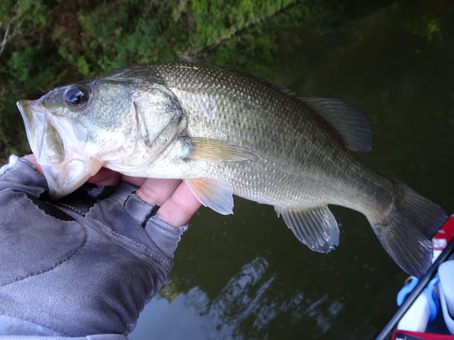 準備を済ませ、10時前くらいに出船!(`ー´)ノ初場所みたいなものなので凸を覚悟し、シャロー側で釣り開始!この湖は「相模湖」「亀山湖」どちらの感覚に近いのかを考えながら釣りをしていました。時期や時間帯等もあり一概には言えませんが、相模湖の感覚に近いのかなぁと思いました。