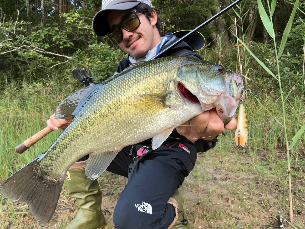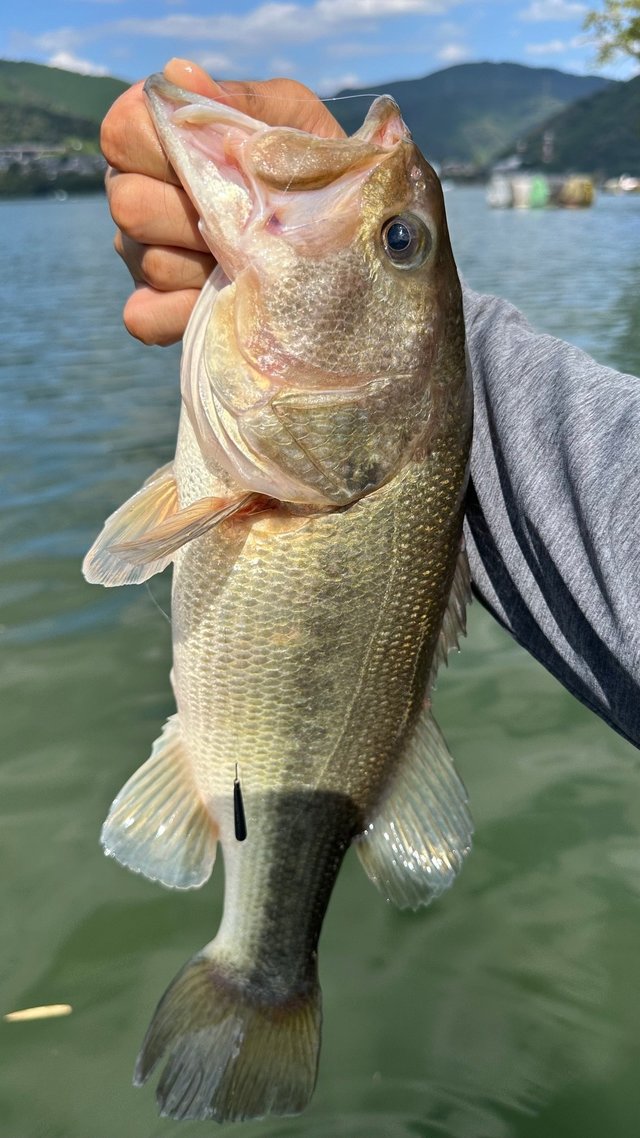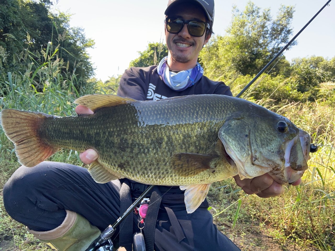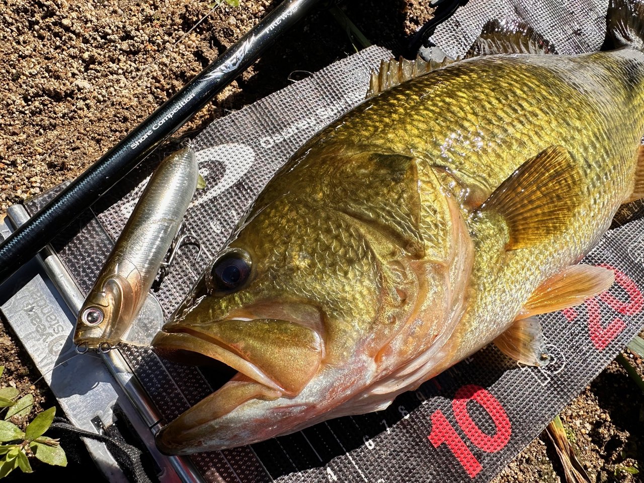 直後に下流から泳いで来たバスの進行方向にキャストし、逃がしを入れるとこれも簡単にバイト!