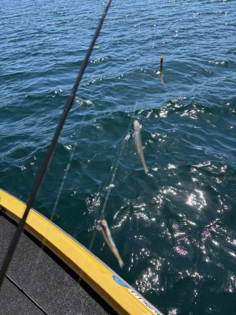 更に追加を狙いますが反応はなく、せっかくのFRP40馬力のボート借りていたので大きく移動、広くエリアをまわりましたが途中でワカサギを楽しんだもののジギングでのトラウトは追加出来ませんでした。