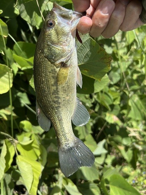流入河川をのぞいてみるとバスがちらほら見えます!