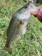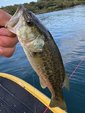朝の気温は18度と涼しい~って言うよりは寒いッ!前回、55クラスをバラしたポイント。果たして、また姿を見えるのか、、、とフィールドを見渡すとまた数m減水しており、インレットが機能してない、、、。てな訳で沖をバイブレーションでスピーディーにチェックしていると幸先良く、35cm位のバスをキャッチ!その後も移動を続けますが反応が無い。ラストポイントはマップで見つけたポイント。足元には子バスを確認!そして、減水している為、釣り人の足跡も複数。