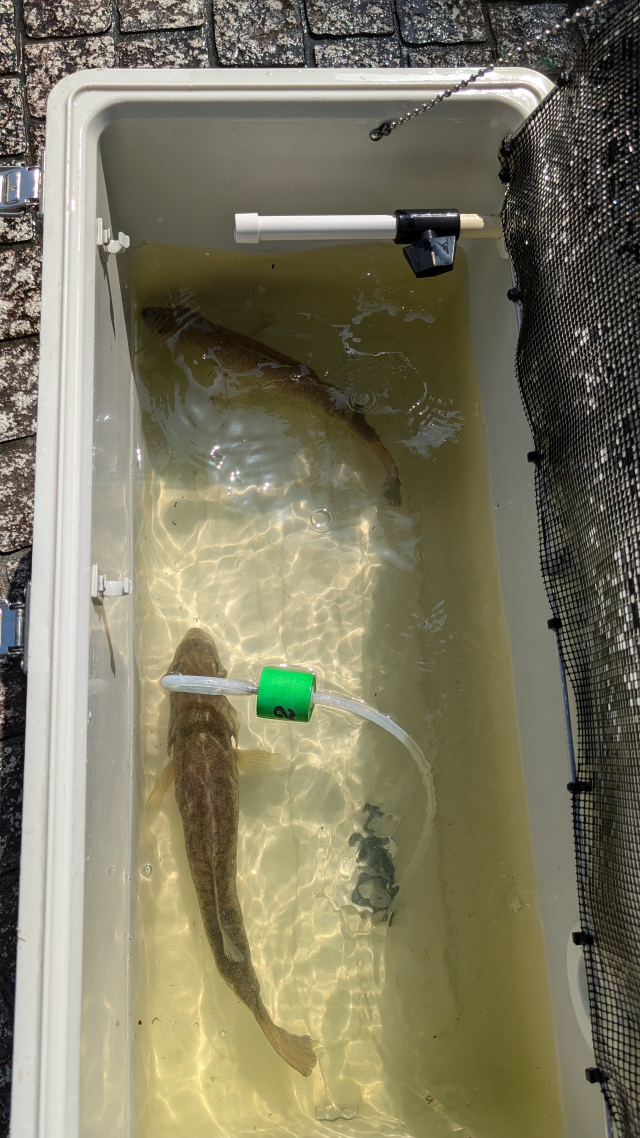 その後ボイルが収まってしまいよりとも島方面に行きよりともの川に入ってミミキングのヘビダンでグッドキーパーの2尾目をキャッチ。