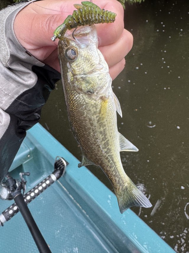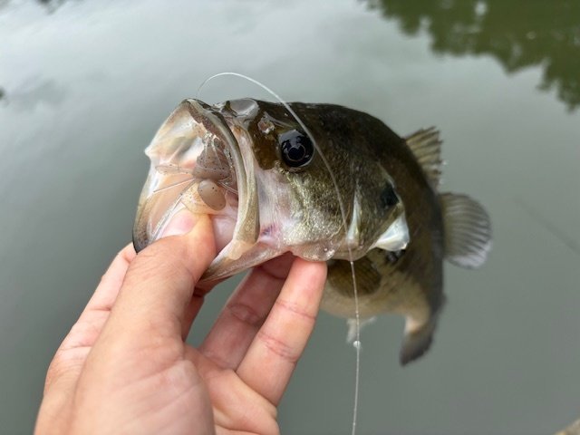釣り上げてみると16cmのノンキ―サイズのブラックバス!
