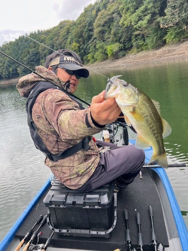 こんにちは青戸店オオサカです(`ー´)ノここ最近気温も一気に下がったので相模湖へ水の様子見に行って来ました。天気:曇りのち雨/水質:ステイン(白色)この日水温は下がったには下がったんですが、魚たちはついていけてなく湖全体を通して釣果的には厳しかった模様です。8割以上は釣果0尾との事でした。(ボート屋さん調べ)釣れていたのはやはりロコアングラーの方達のみ(;・`д・´)その方達も最大サイズ35㎝とだいぶ苦戦をされていたとの事です。私も小さいサイズは釣れましたが残念な結果に終わりました(゚Д゚)帰着1時間前から入魂したいクランクを付けひたすらにバンクをうって巻いていると枝に引っ掛かるような感じがし「?」マークを頭に浮かべ軽くあおると急に重くなり40位のバスが釣れてました・・ランディング直前でバレましたけど・・・とれていればこの日の最大サイズ更新出来たなぁ・・・悔しいのでリベンジに行きます!