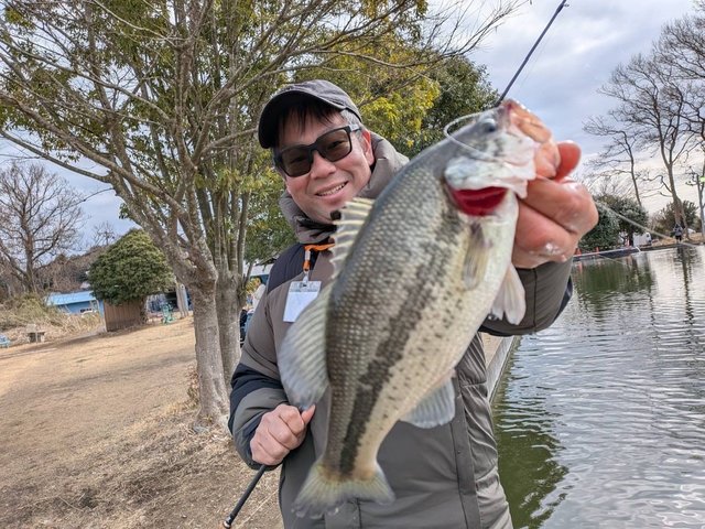 真冬の冬バス攻略にTSURIBORI水戸南へ釣行。水温的に低活性と思い2~3インチクラスのワームにオフセットフックでのノーシンカーでキャスト!しばらくすると同行のスタッフにヒットの声!ポイントを変えながらスローに誘っているとゆっくりとしたアタリ!向こう合わせで喰わせヒット!30cmクラスのバスをゲット!ダウンショットでも小刻みに誘いながらステイを繰り返すとヒット!その後もパターンが分かればコンスタントに釣ることが出来40cmアップの良型もゲットすることが出来ました。2月の低活性時期にも楽しめる管理釣り場のブラックバスを是非トライしてその後もパターンが分かればコンスタントに釣ることが出来下さい!
