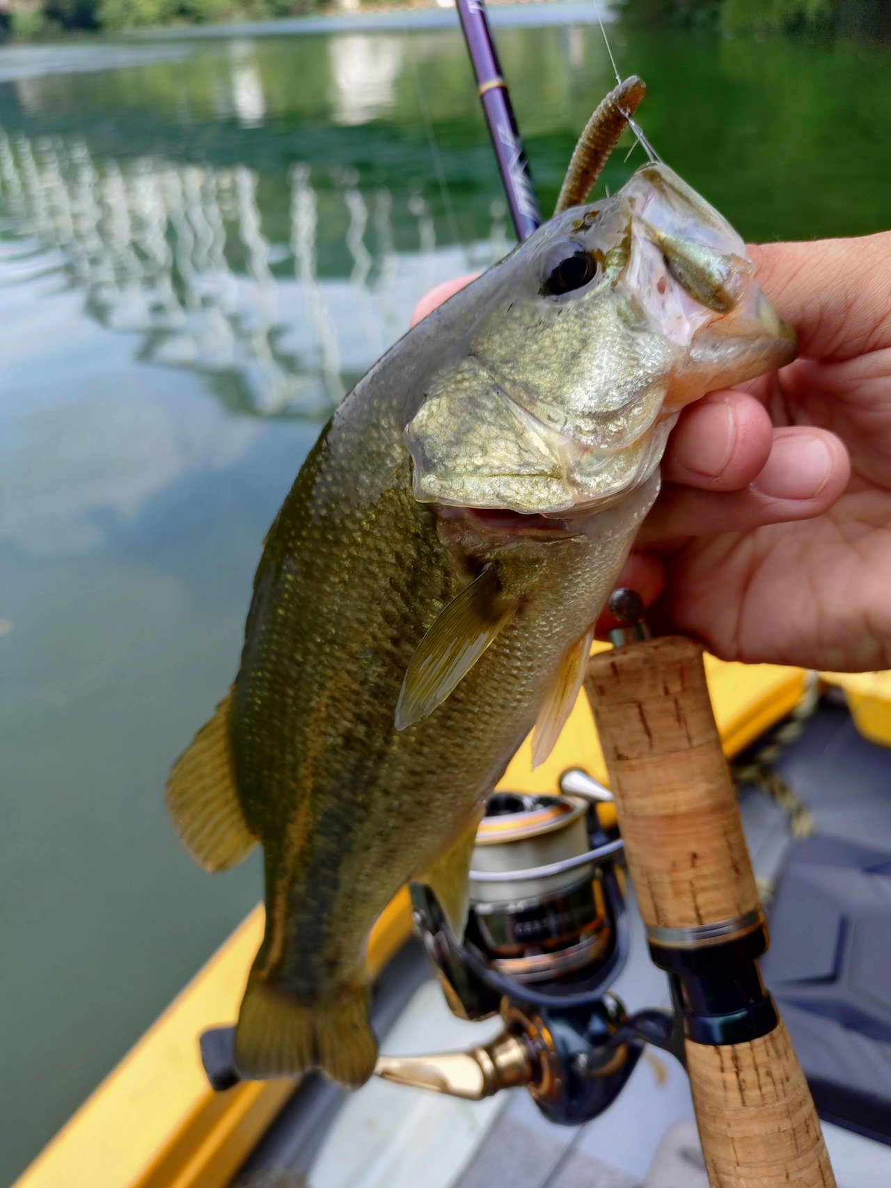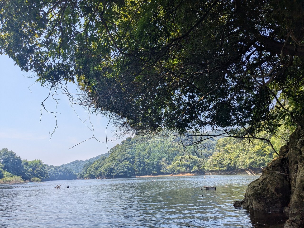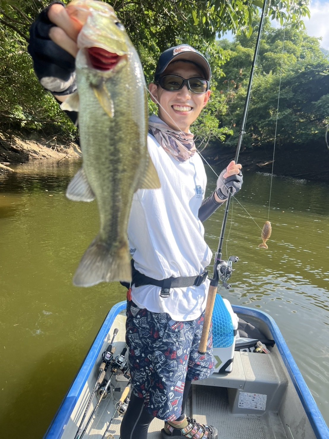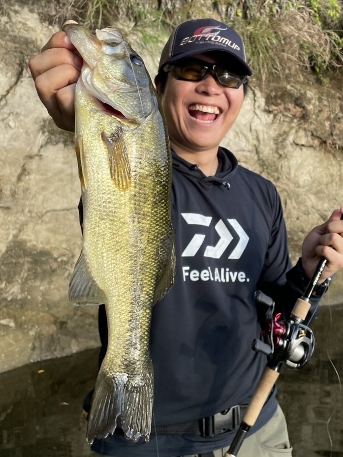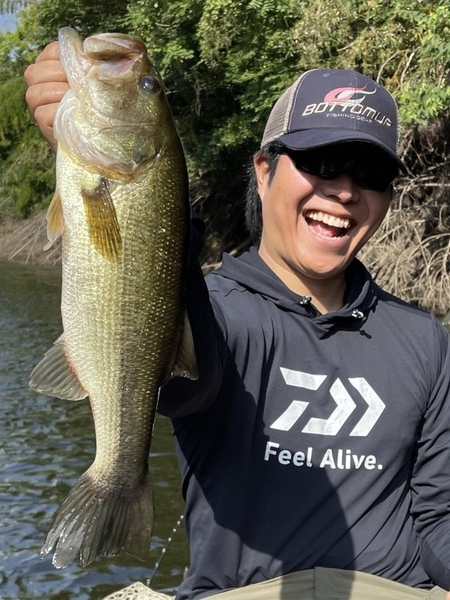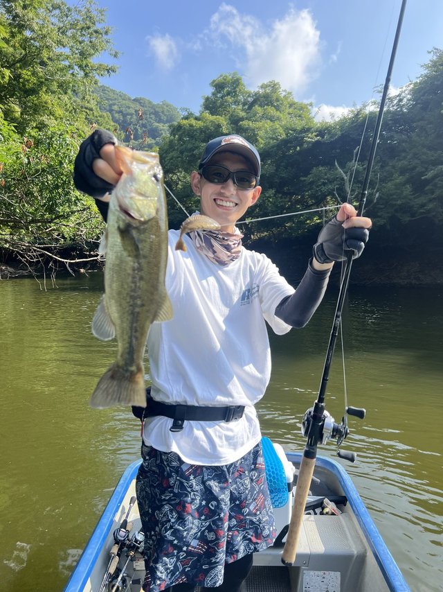 日が昇ってからはシェードを求めて上流域、水深を求めてダムサイトに行ってみますが魚からの反応は無し。魚の反応が変わってアタリらしきものが出始めたのは午後3時近く。