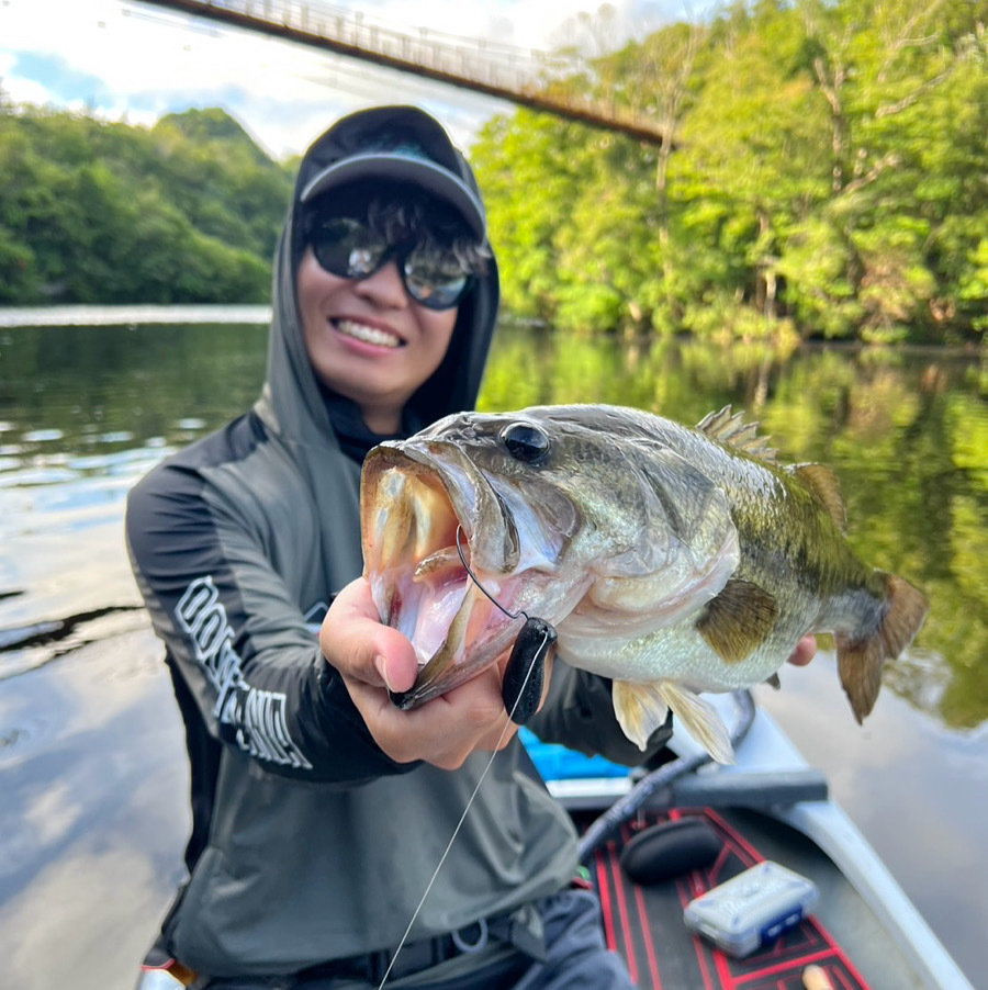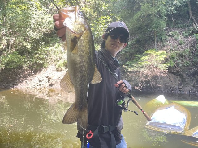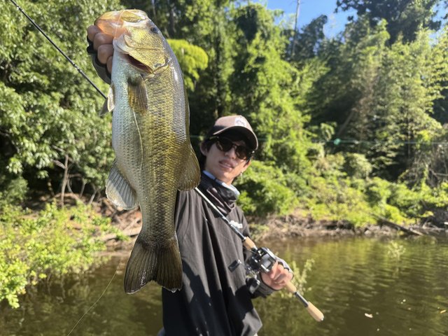 竹藪の下を沈み虫で探っているとラインが走りだしバスがヒット!細いラインだったので慎重にやり取りしてなんとか釣ることができました。結果的に40UPが3本釣れたので満足ですね