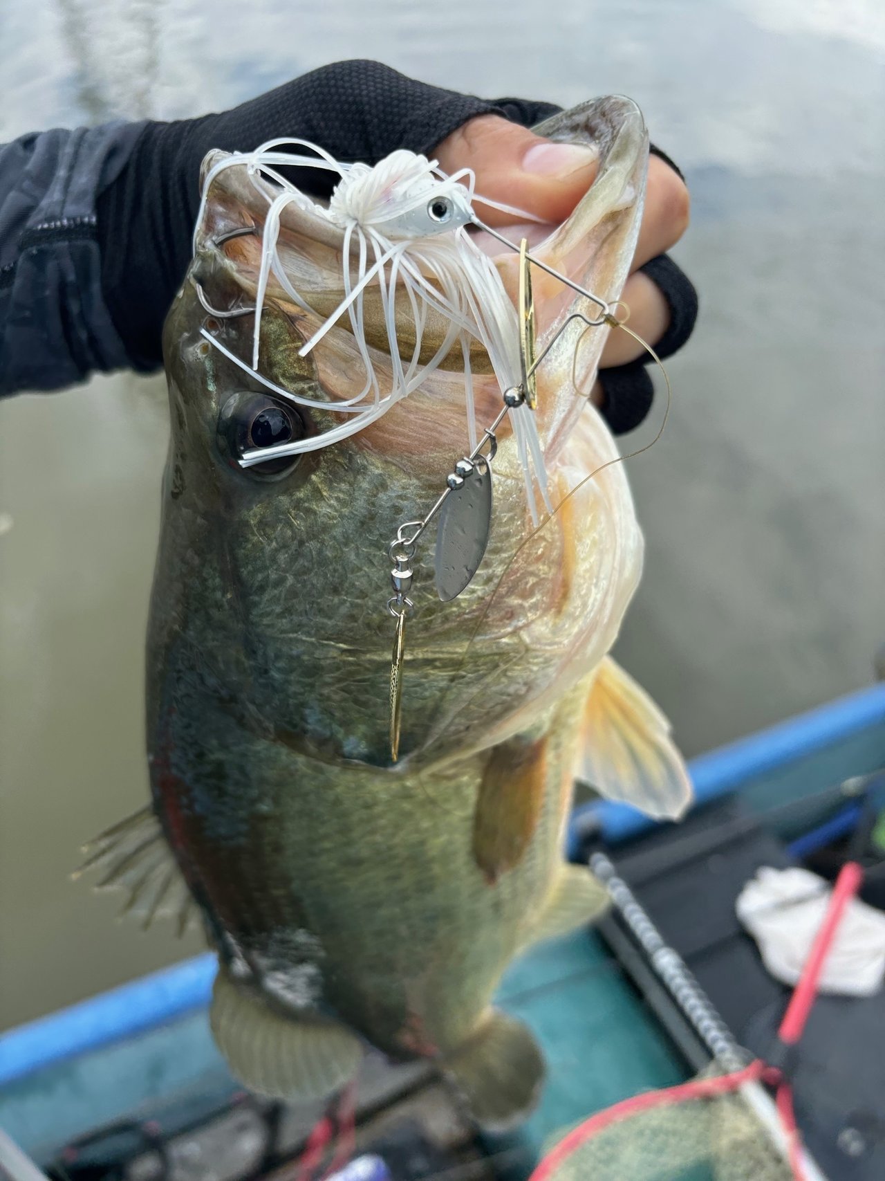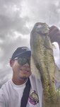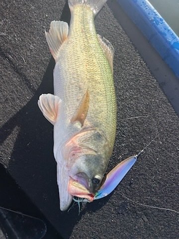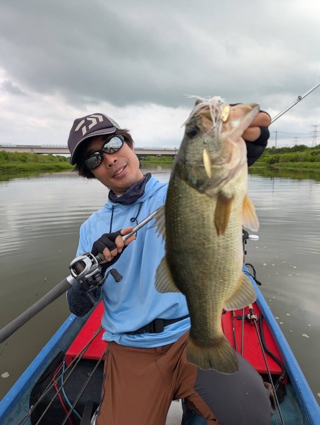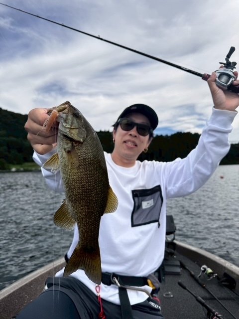 今回は友人と津久井湖に行ってきました!当日は台風の影響があり危なそうなら即撤退ということで出船!水の綺麗なエリアにも見えバスが全く見えず浮いていない様子。フィネスは厳しそうな状況なので二人で撃ち物、巻物を試すも反応無し。ダメ元で最近ハマり中のデカトップを立木近くを通すと水面炸裂!良いバスがキャッチできました!そしてここから怒涛のバイト連発!喰いミスやすっぽ抜けもありましたが10バイト4キャッチと大満足な釣果となりました!天候も続行不可になるほど悪くはならずりきれました!