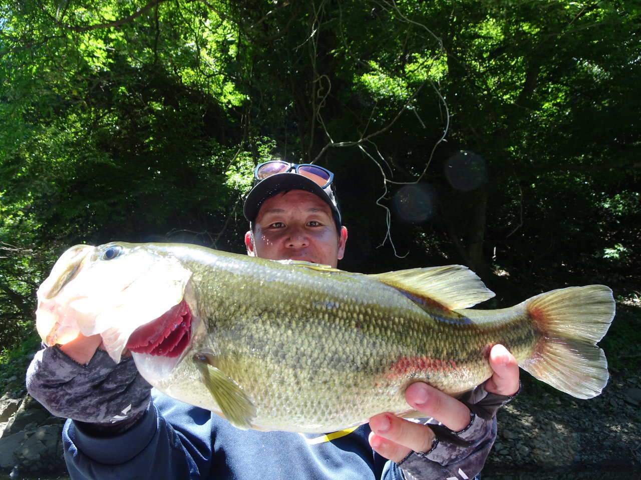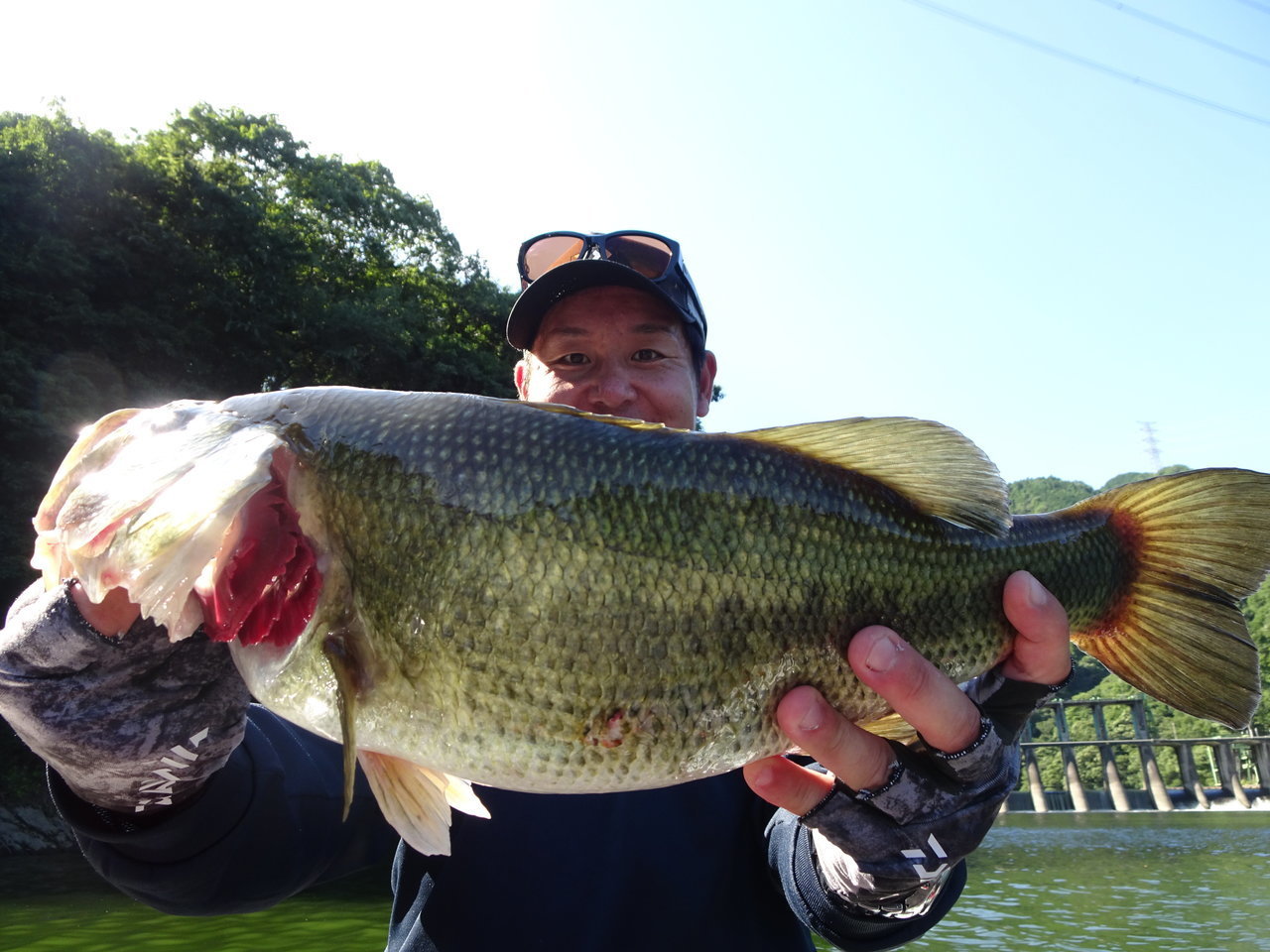 ジャンプしたり強烈に下に潜ったり最高なファイトをしてくれたのは45cm、1500g(推定)のナイスプロポーションバスでした!
