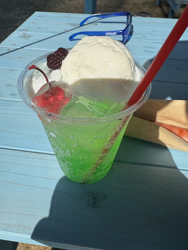 お腹がすいて、集中力が切れてしまったのでキッチンカーでクリームソーダ―とフランクフルトを購入し、休憩♪