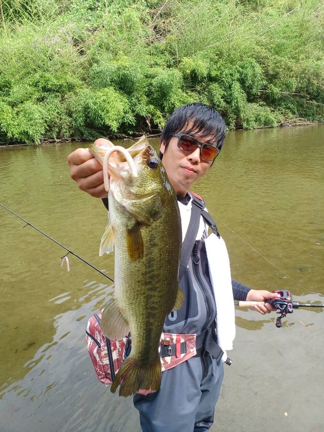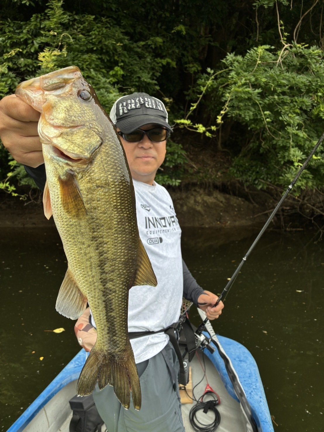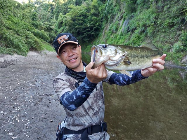 夏恒例の川でのウェーディングバス釣りしてきました。当日は14時スタート、先行者もいましたが状況が良いのかバスも見えます。ただ非常にスレておりなかなか掛からず、釣れたのは1時間後、一誠の「ギルフラットjr」で40㎝。その後1時間後くらいにスパテラスリム6.5で47㎝の良型を釣って納竿。もっと良いサイズも見えましたが掛けられず、次回また狙います。