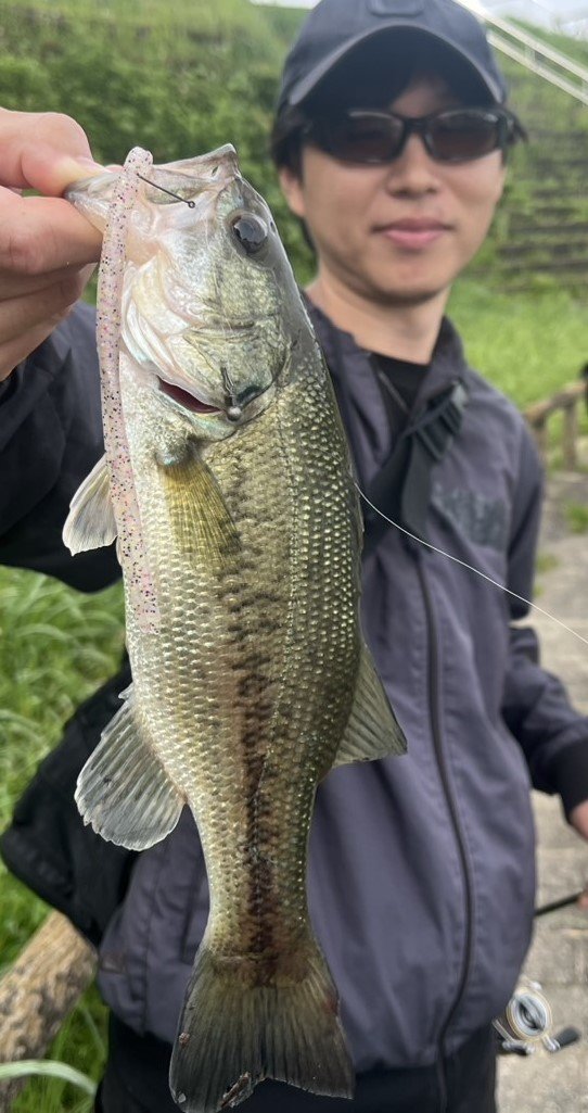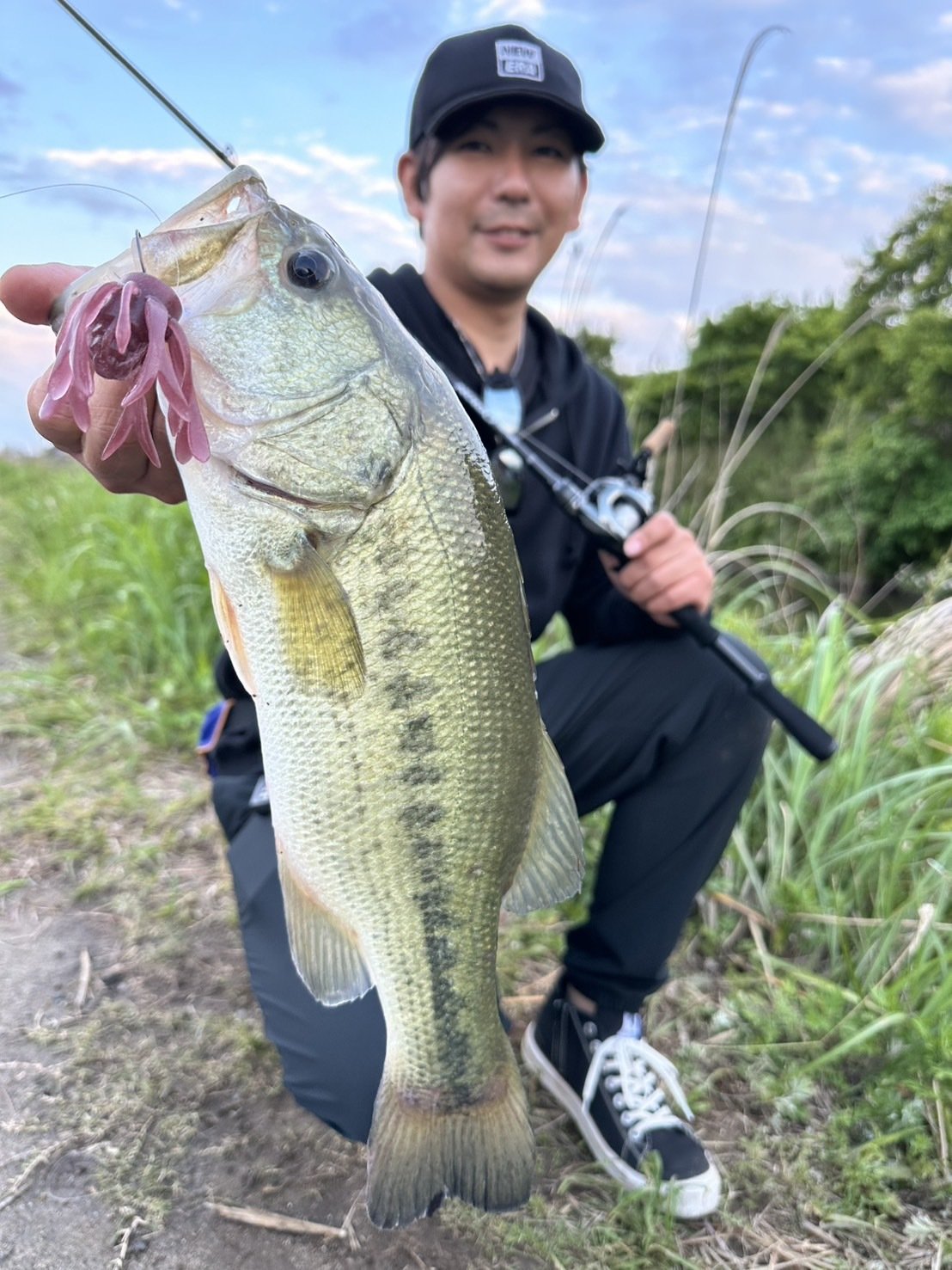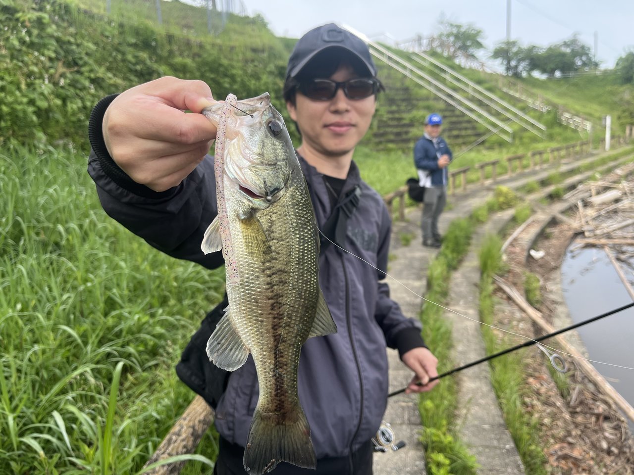 その後は養老川へ。バスは結構見えますがなかなか食わせられず。2本目の橋まで来たところでようやく1本食わせられました!こちらはサイコロのノーシンカーをボトムに置いてキャッチ。更に川を上りましたが反応なく、折り返し。ほぼ川から出かかった所で見つけたバスにサイコロを投げると着水した瞬間にバイト!アフターのナイスサイズでした♪