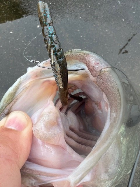 釣れたのはバスフェスタ2025で販売するOSPの3Dワッキー!カラーはオリジナルカラーで釣れました!