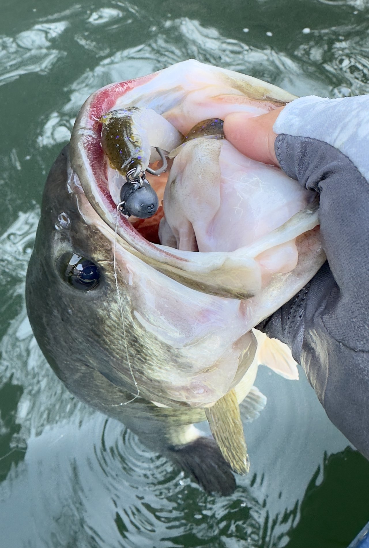 例年この時期はカバー撃ちで良く釣れるのですが、この日はやや反応鈍め。そこでスピニングタックルでライトキャロを組んで探るといい感じ釣れました。ワームはジャッカルのシザーコームが好反応でしたが、シャッドテール等ズル引いた時にアクションしてくれるものなら何でも良さそうでした。それよりも動かし方がキモらしく、結構速めのズル引きでステイもほぼ無し、常にワームが動いているように意識しているとよく釣れました。また、カバー撃ちに比べてサイズも良く、40アップも混ざり楽しめました。