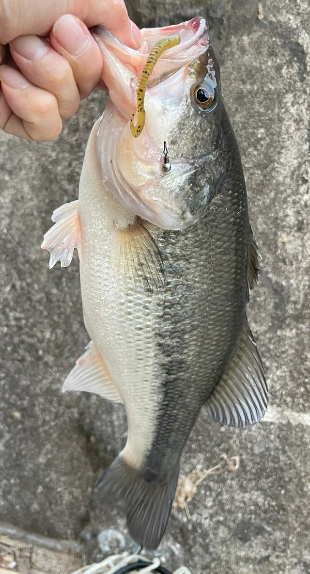 リグを作り直して再度ヒット。40センチのブリブリのバスが釣れました。
