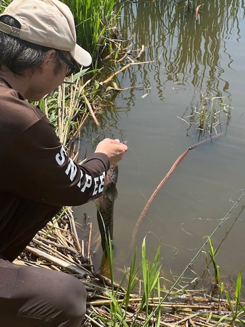 今回は津久井湖に行ってきました!出船後はバンク沿いを巻いたり撃ったりフィネスでネチネチするも反応を得られず。上流では見えバスを発見するもルアーの着水で逃げるくらいの天才達に太刀打ちできず。本湖に戻りバンク沿いを改めて見るとペアリングの魚だらけ!ワンドに入ると奥の方にスポーニングに絡まない単独のバスを発見!MMZのノーシンカーを岸から落とすようにアプローチするとすっ飛んできてバイト!昼過ぎにようやく44センチのナイスバスをキャッチ!その後はスクールに出会ったりと魚影は濃いめ。入り直しで2本追加し終了となりました!
