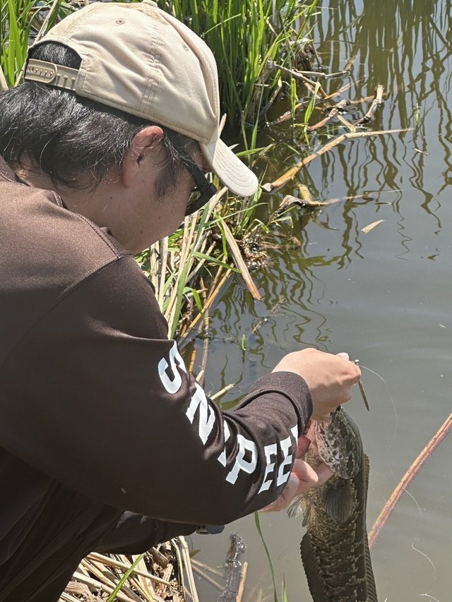 釣れたのは30cm位のブラックバスでした。サイズは小さかったのですがトップウォーターで釣れた魚はどんなサイズでもワクワクします!!