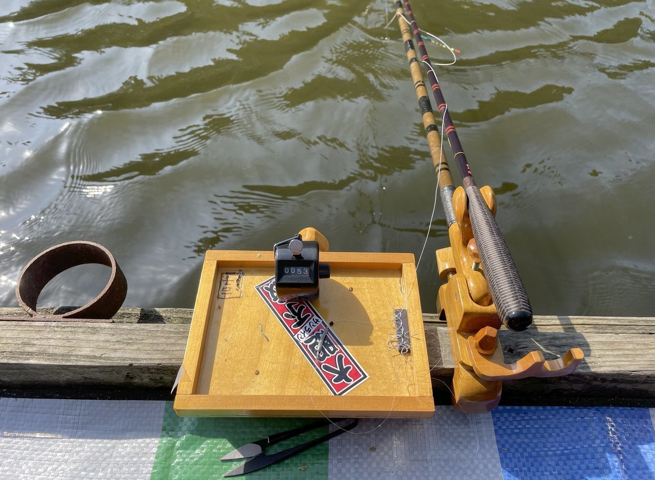 もう8尺で心中覚悟する気でホタチョ―⇒チョーチン両ダンゴ⇒メーター両ダンゴで前後半で計6時間頑張りましたが、自動検量機に載せたキロ越えは最後のメーター両ダンゴで釣れた1150gのみでした。(笑)