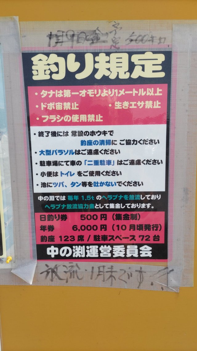 ちなみにリール付き竿は禁止、のべ竿のみ使用可能で専用テラスのみ釣り可能なのでそこはお気を付けて…。