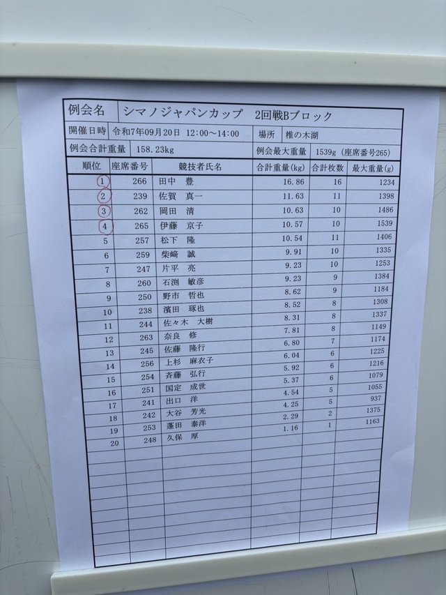 1回戦は3位で通過し、2回戦は同枚数でしたが、重量が足りずあと1枚が釣れずに終了です。