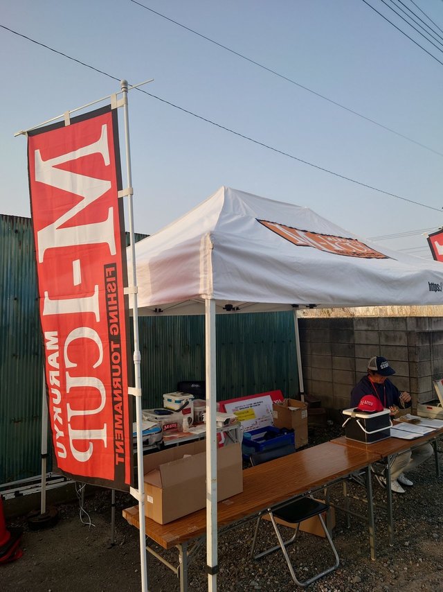受付時間が5:30~6:00なので5:40に到着して受付に行ったら、マルキユーインストラクター吉田康雄さんに「一番最後だよ」(笑)と言われました。皆様早すぎです!!抽選箱から最後の1枚のクジを引き中央桟橋でした。この日の参加者は71人で7ブロック約10人で戦います!予選通過が11名です。