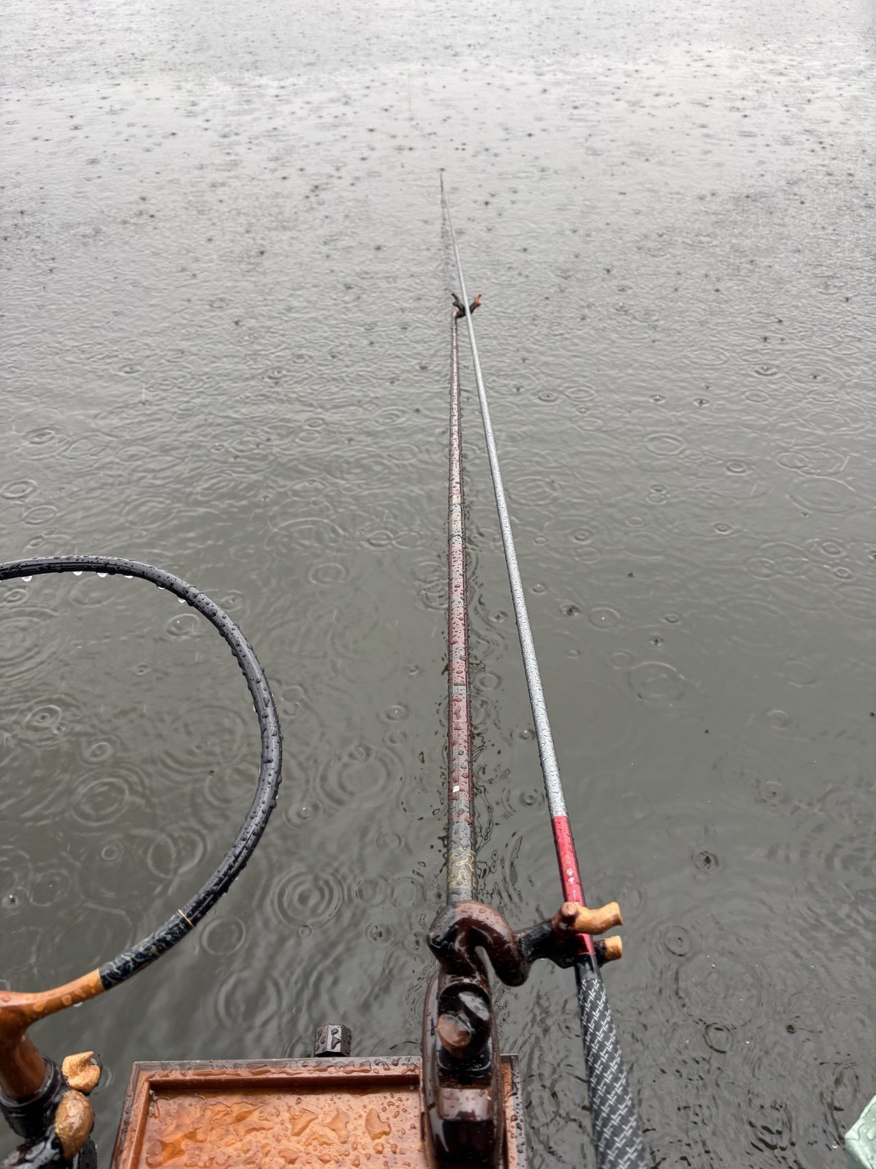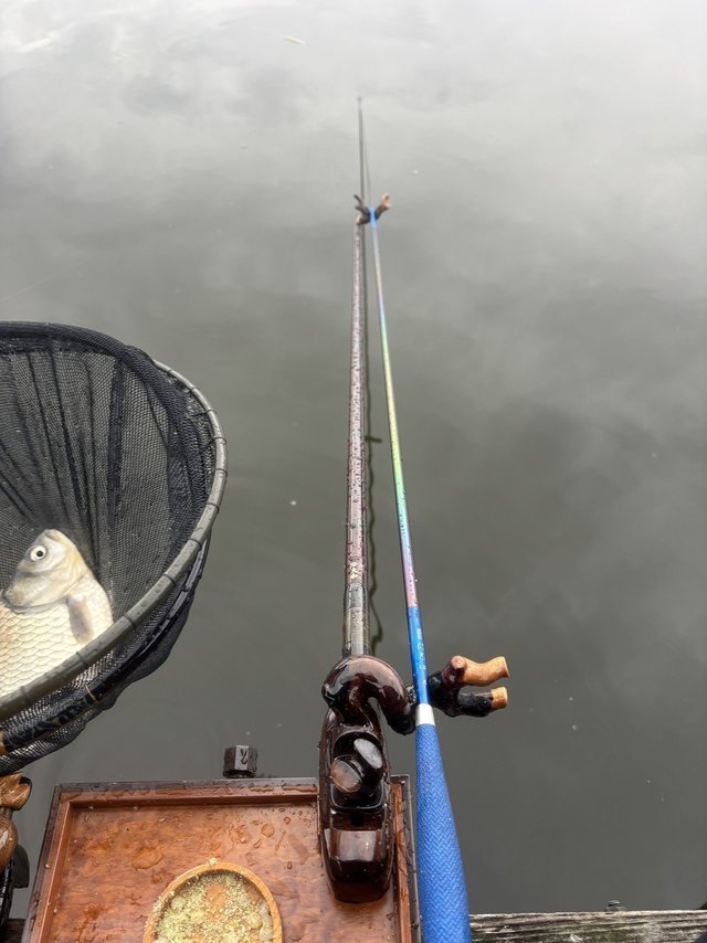 東久留米店井上です。埼玉県神扇池に行ってきました。準備が終わり、しばらくすると雨が降り始めてきました。14尺の段底釣りから始めましたが、まだへらが底に着いていないのか?段底らしいよいアタリが出ませんでした。下針の号数を変えたり、ズラシ幅を変えたり色々やってみましたが、私には2枚釣るのがやっとでした。雨は本降りになり、心が折れ始めました。段底釣りはあきらめて、9尺チョーチンセットに変更しました。カラツンが出て、2枚追加して、雨が小雨になったので終了しました。11月28日(金)に放流予定があるみたいです。