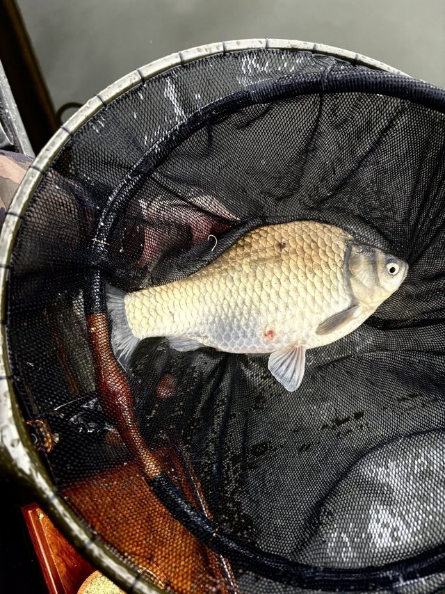 浮子がモヤモヤと動くだけで中々決めアタリが出ず苦戦しましたが、標準から少し柔らかめのエサを撃つのが正解だった模様。