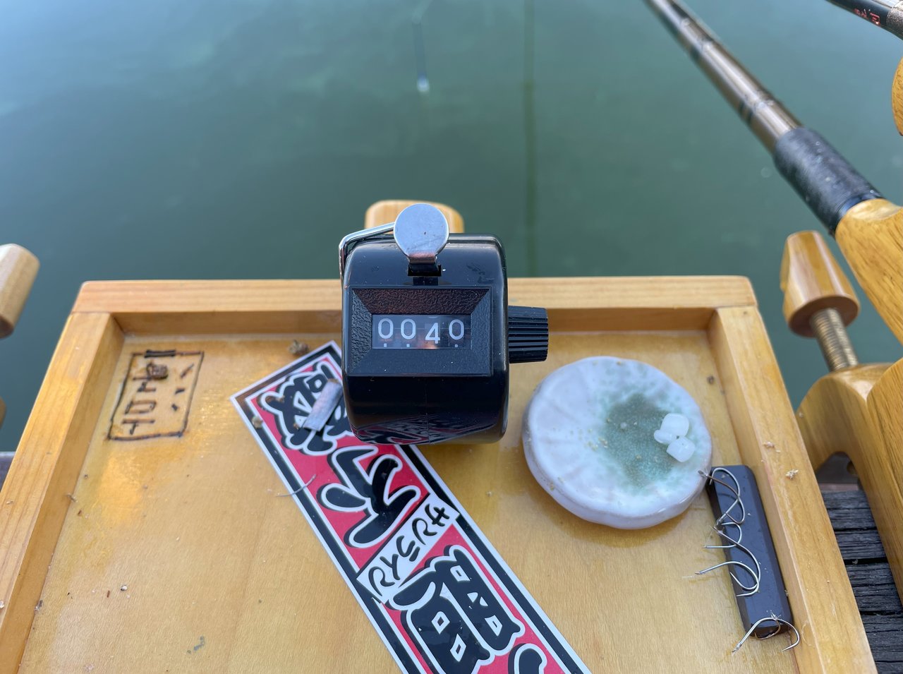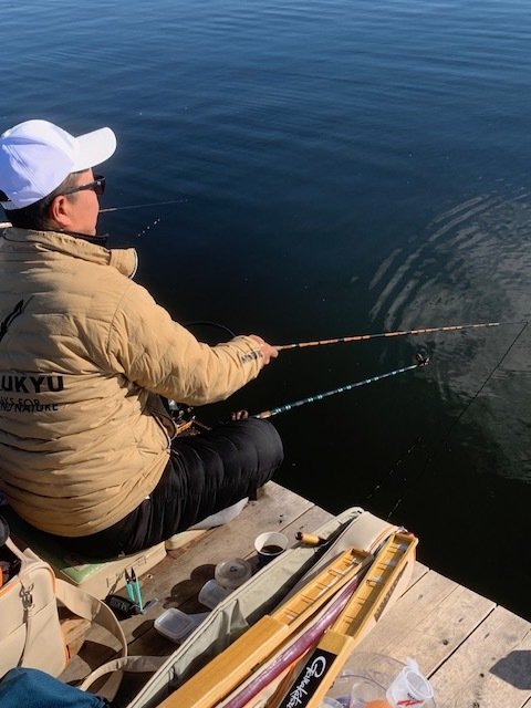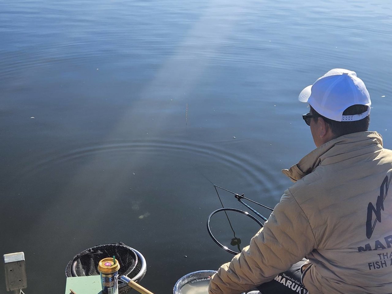 さて実釣スタート。噂の通りなかなか触りすら出ず苦戦。ようやく1枚。昼飯を挟み再スタート。前半全くうまくいかなかったので、ハリスを伸ばし、浮子を変えエサも微調整。粒戦から粒戦細粒へ。これが功を奏したのか連発。調子上がってきた!