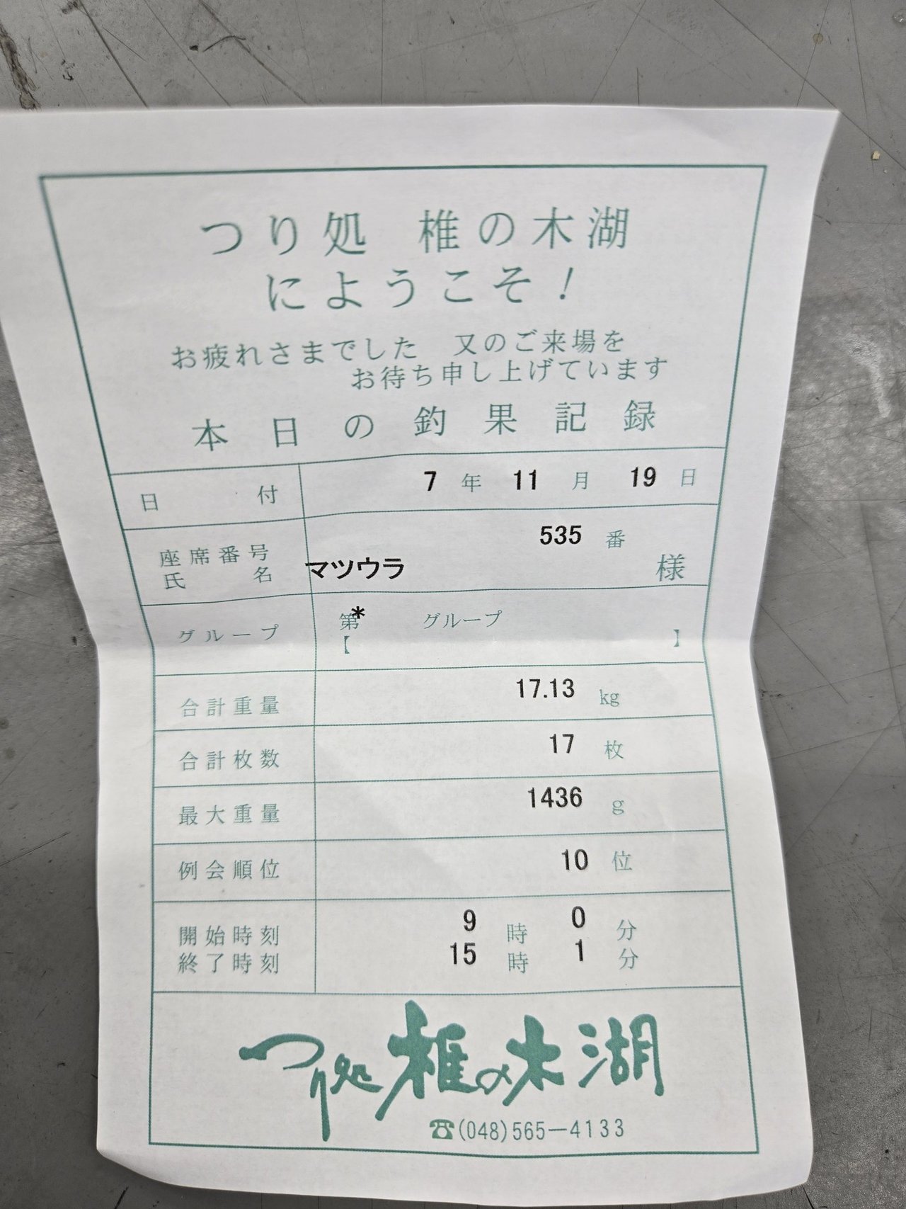 ふじみ野店小田嶋さんと椎の木湖主催の大型ベラ大会に参加してきました