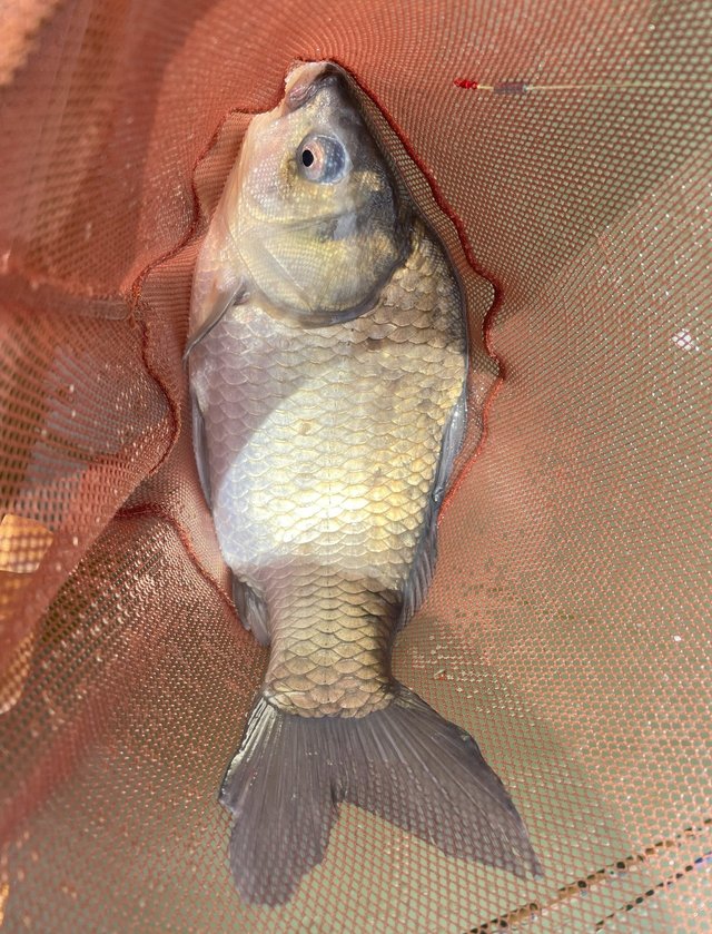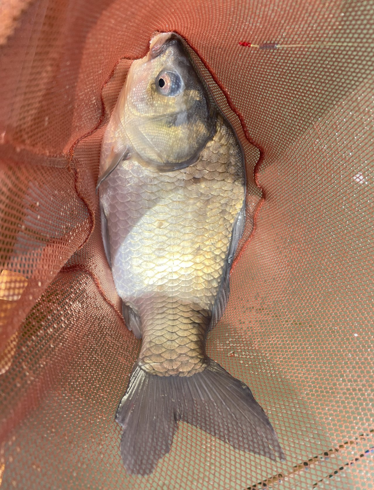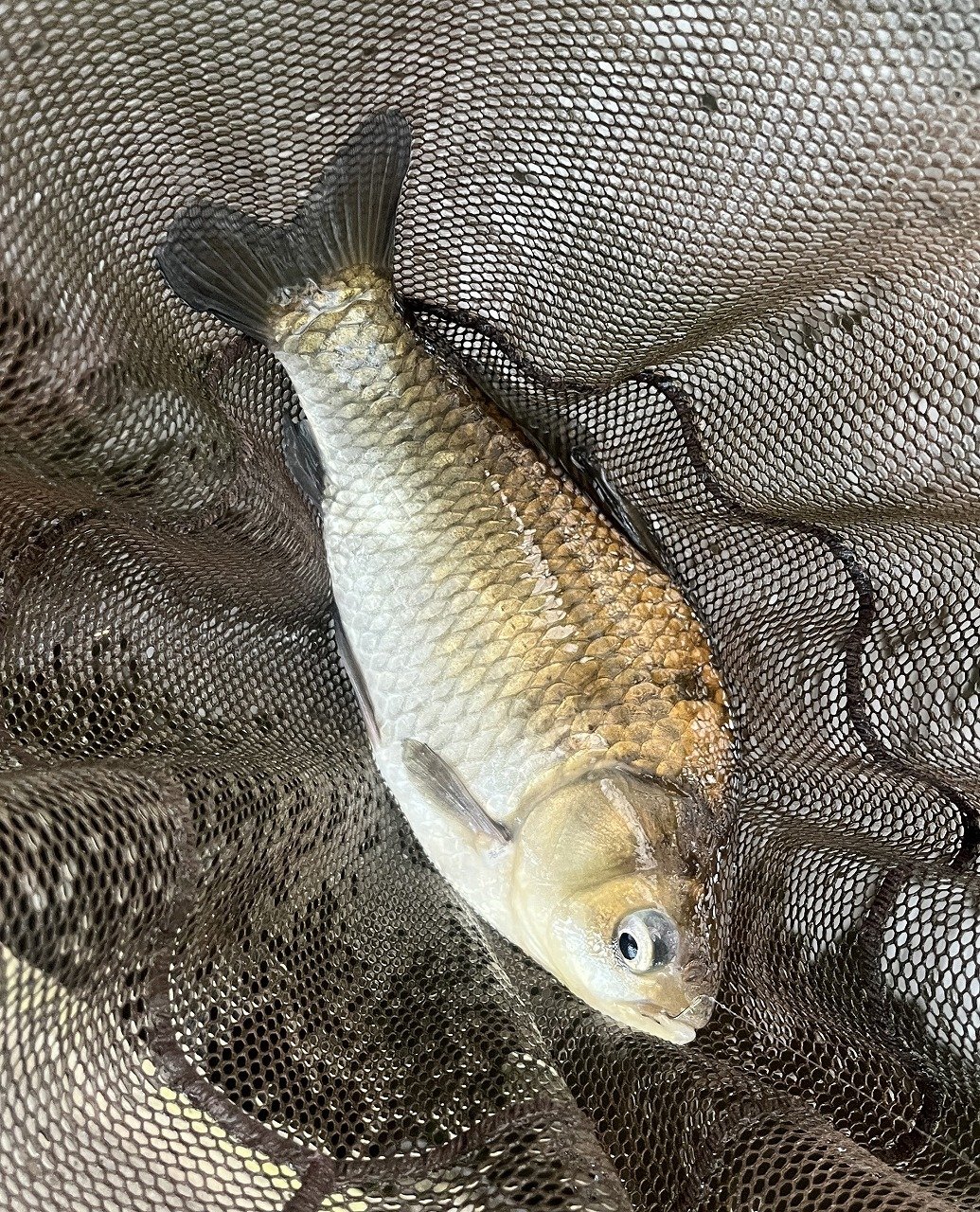 午前中はほぼ居食い状態で明確なアタリは出ませんでしたが、小鮒⇒8寸マブナをキャッチ。