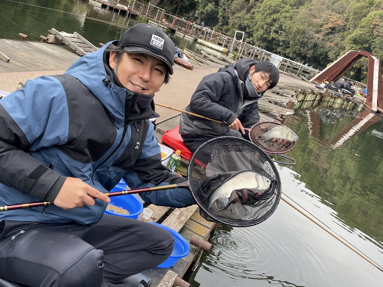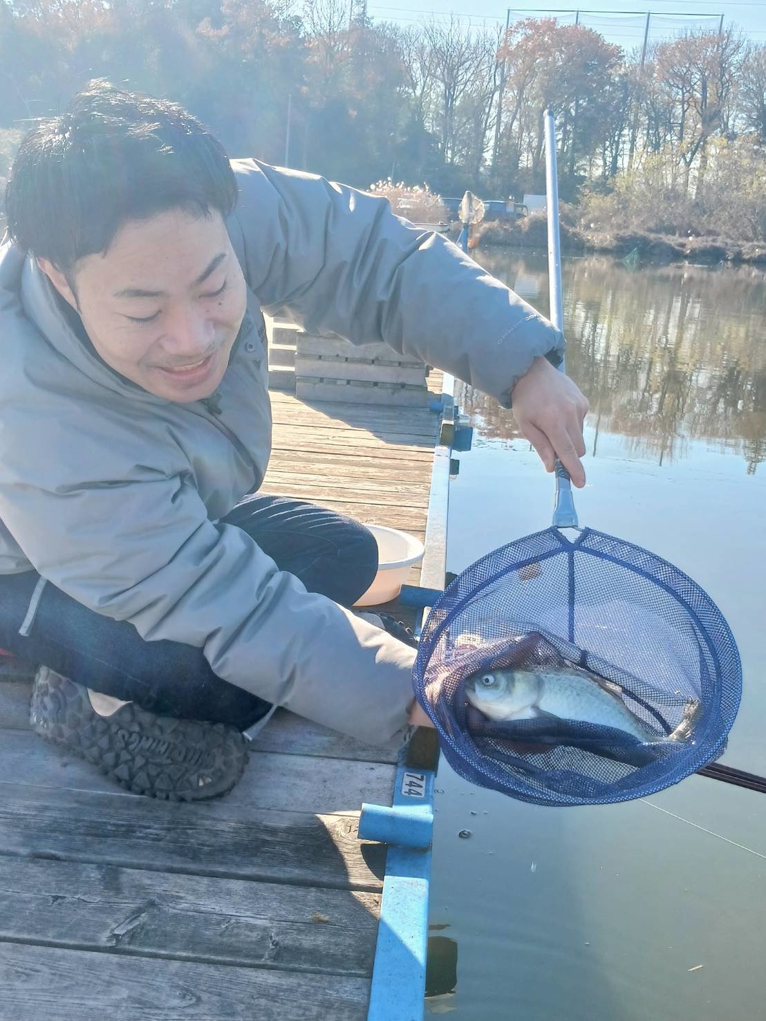 この日は冷え込みの影響でウキが動かず、30分近くエサ打ちをしてようやく1枚目をキャッチ!
