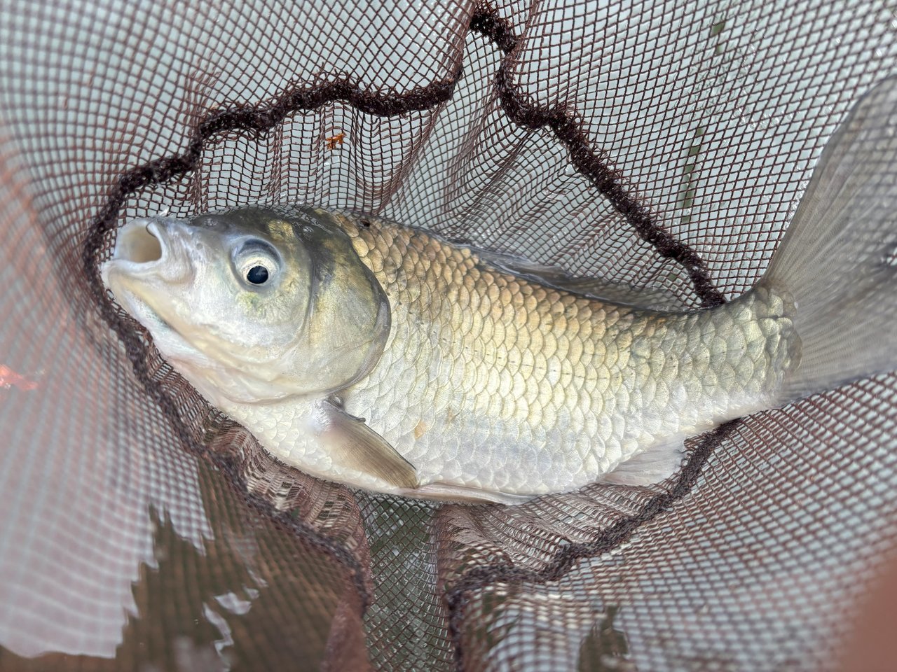 同行した友人はグル団子で順調に釣果を重ね、10匹以上タモに収めていました。
