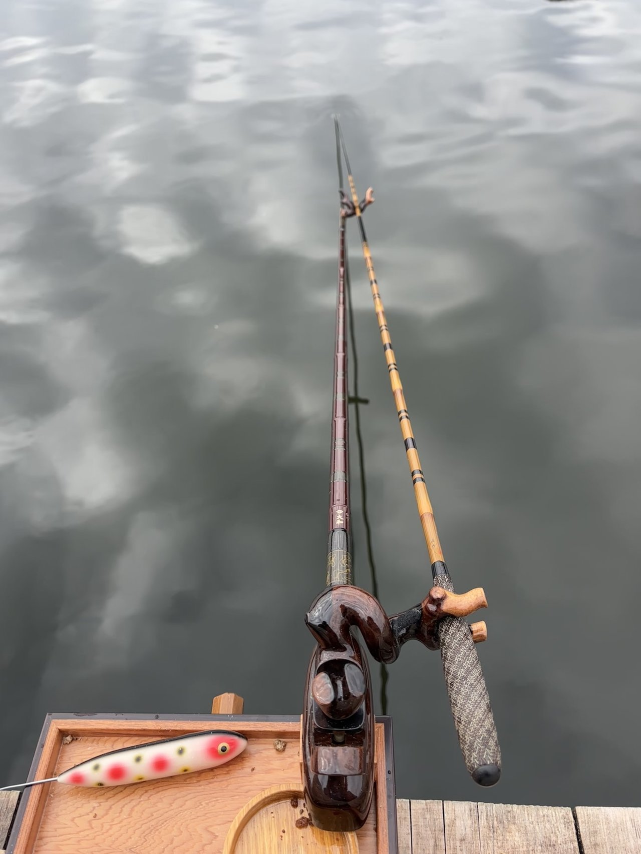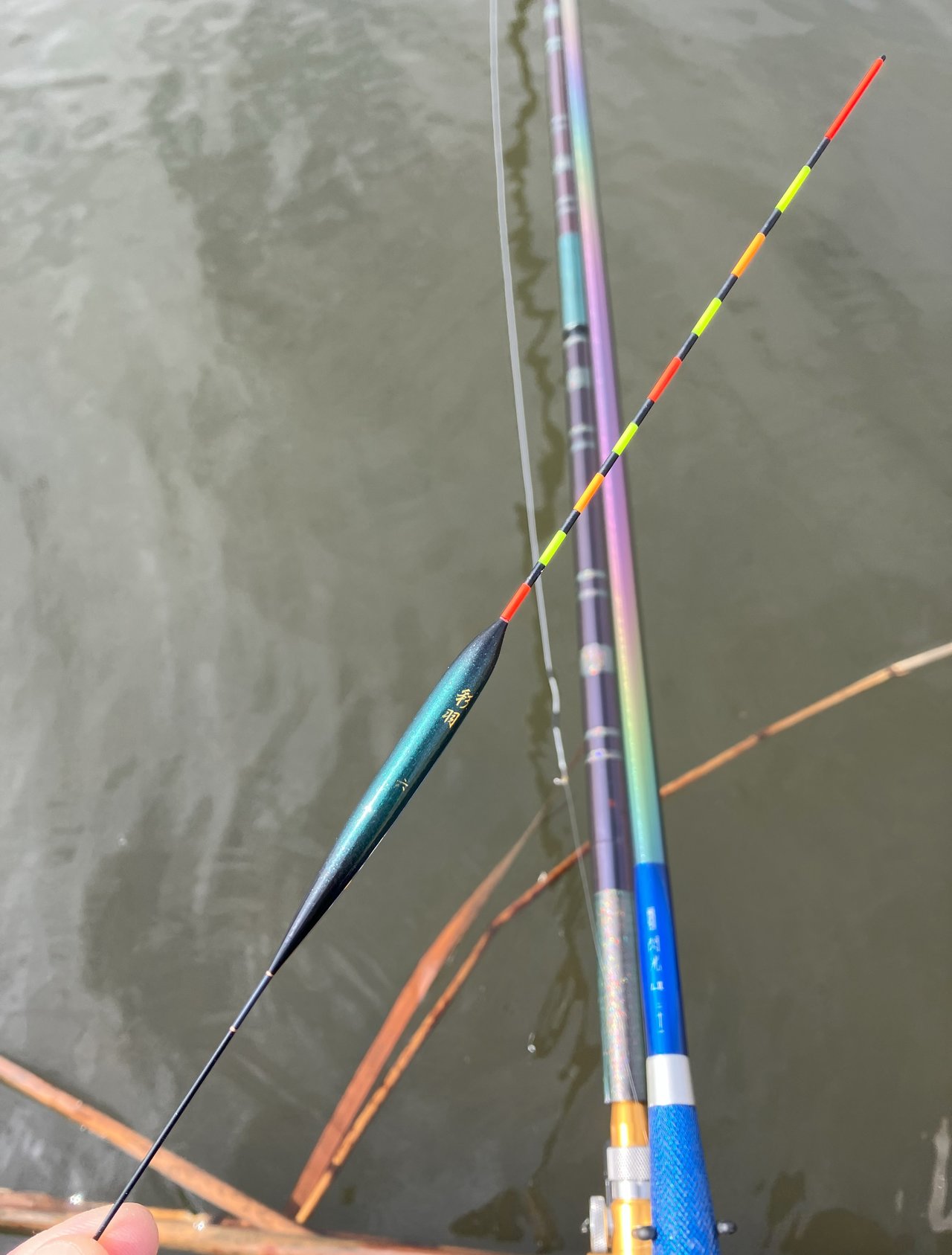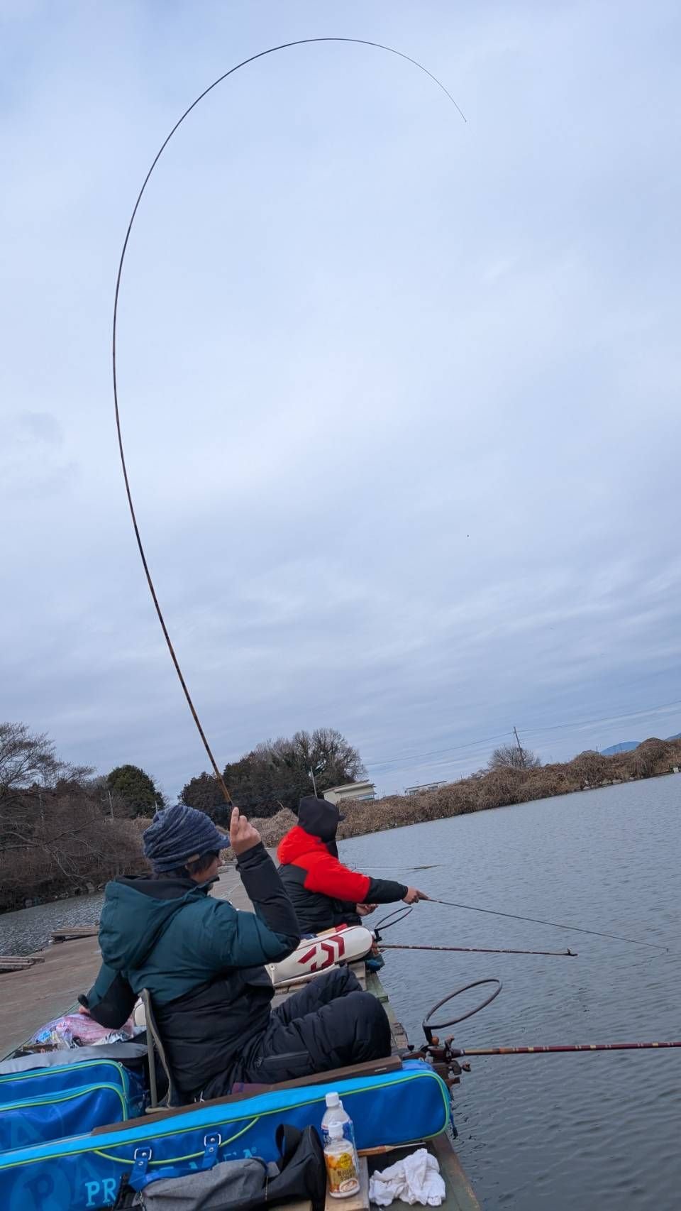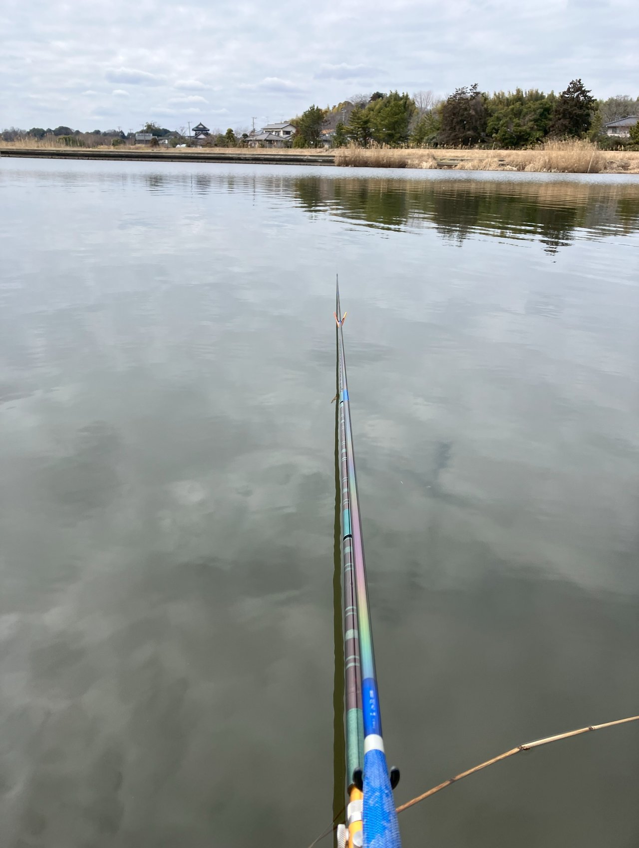 前日の雨で寒さが戻り、かなりの曇天日でしたが東風(追い風)が吹くならといつもとは反対の対岸エリアで21尺を4時間程振り回しました。