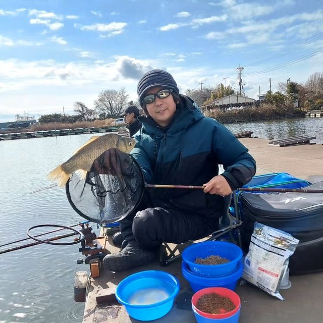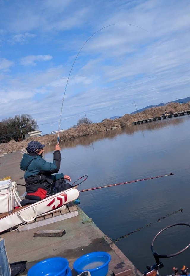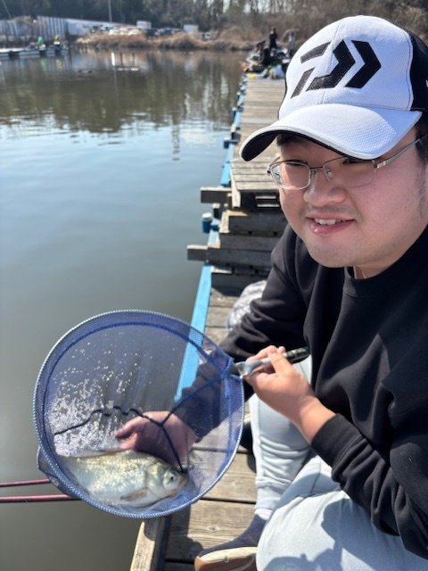 東久留米店井上です。千葉県野田幸手園に行ってきました。少しづつ暖かくなり始めてきました。遅めの8時に到着しました。平日ですが各桟橋に結構な人が入っていました。竹桟橋の奥の方が空いていたので入釣しました。12尺タナ2本のセット釣りでエサ打ち開始。少し水温が上がりだしてきたのでジャミが結構騒ぎます。1時間くらいエサ打ちして、ようやくへらが寄り始めて釣れました。去年の秋に放流したへらが回遊してきたようで、強い引きで楽しませてくれました。アタリが出てきたので、タナを1.5本にしましたが、アタリが無くなりました。再びタナ2本に戻すとアタリが出るという時合いでした。