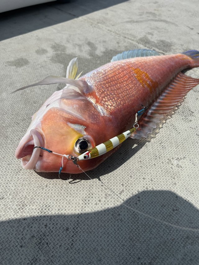 前日の大河内店長は巻き上げが良かったみたいですが、当日はマダイもアマダイも小突きの方がヒット率が高くボトムにめり込んだヘッドが抜けるタイミングでのアタリが多かったです!