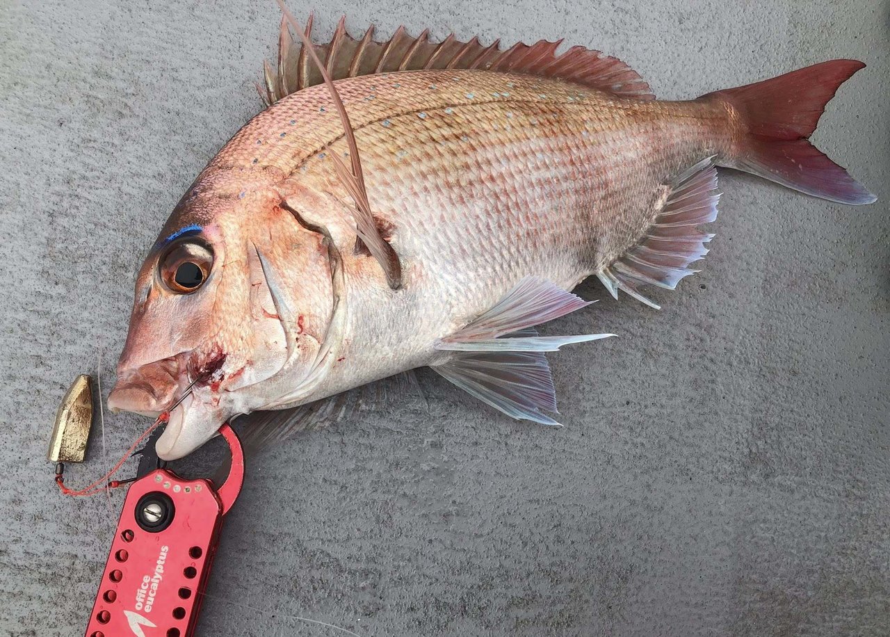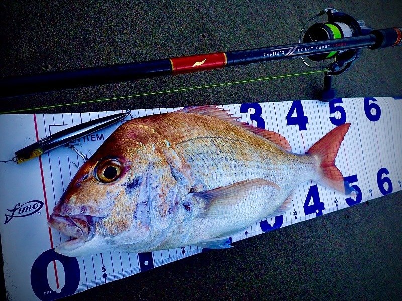 ドラグを何度か滑らせてあがってきたのはなんと真鯛!!