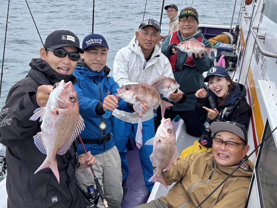 朝のスタートからマダイは高活性で入れ食いな状況が続き、船に魚が付いちゃってるよ~と船長がアナウンスしちゃうくらいのミラクルで、3キロアップのマダイも上がったり竿頭の方は20匹以上キャッチしたり、ほぼ全員安打の大盛会な神イベントになりましたョ☆