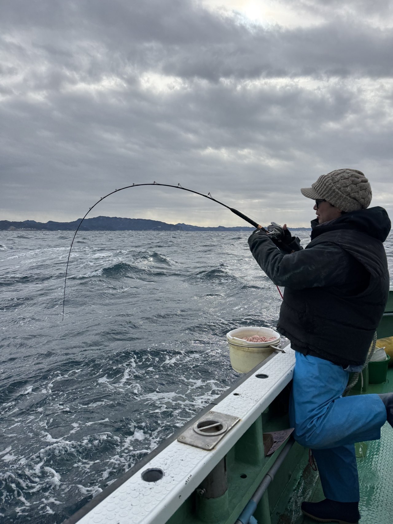 そしてそろそろ最終の流しかなという頃、竿先にイワシ以上の重みが!