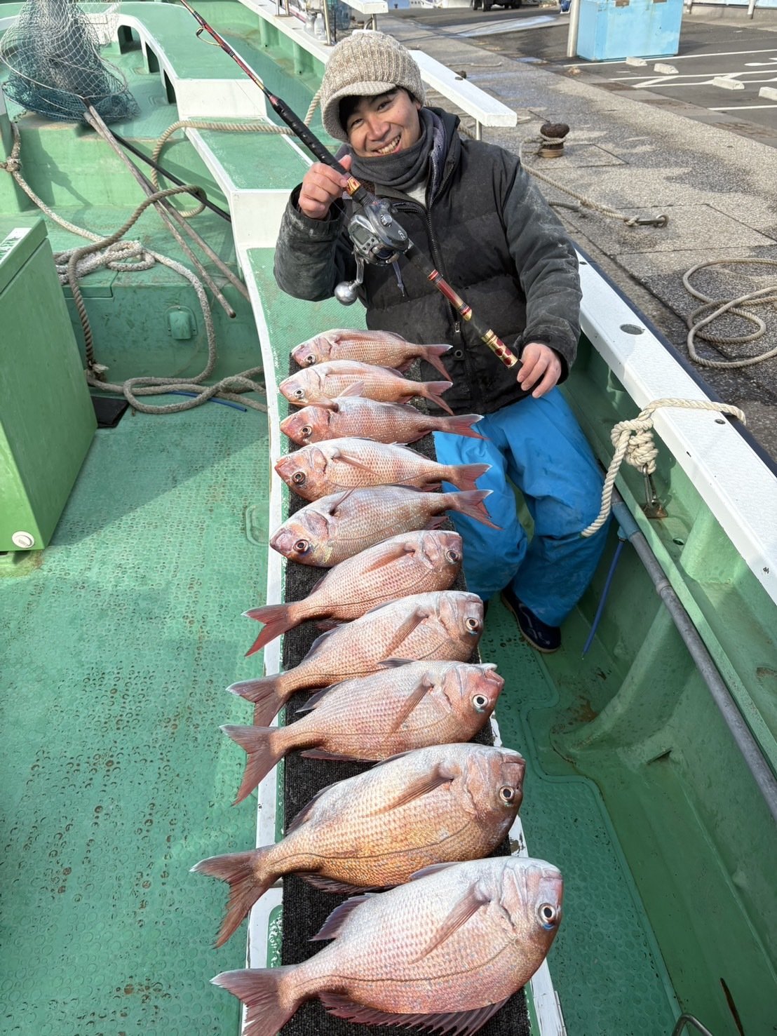 最後の30分でマダイの活性が上がってポンポン釣れてくれて12枚でフィニッシュ。