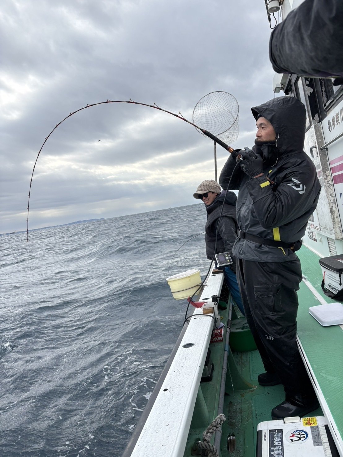 私は船初心者の為、周りの方の仕掛けを上げてもらって、ネットインから締めまで全部やって頂いちゃいました!