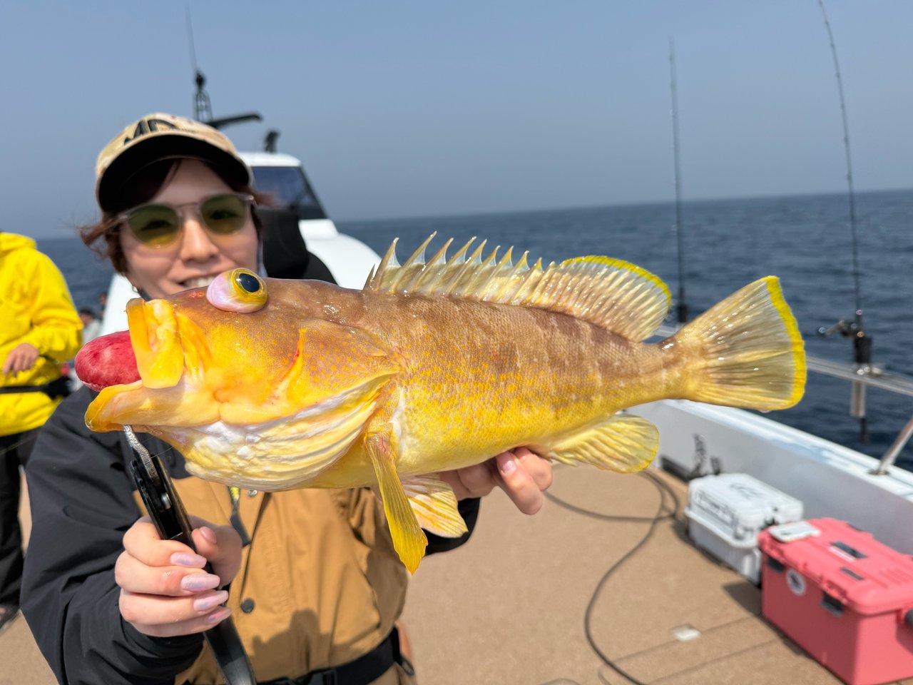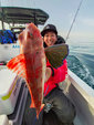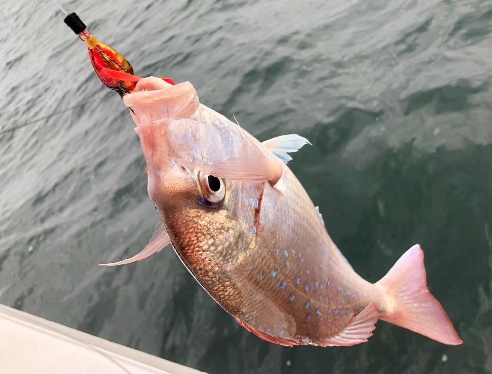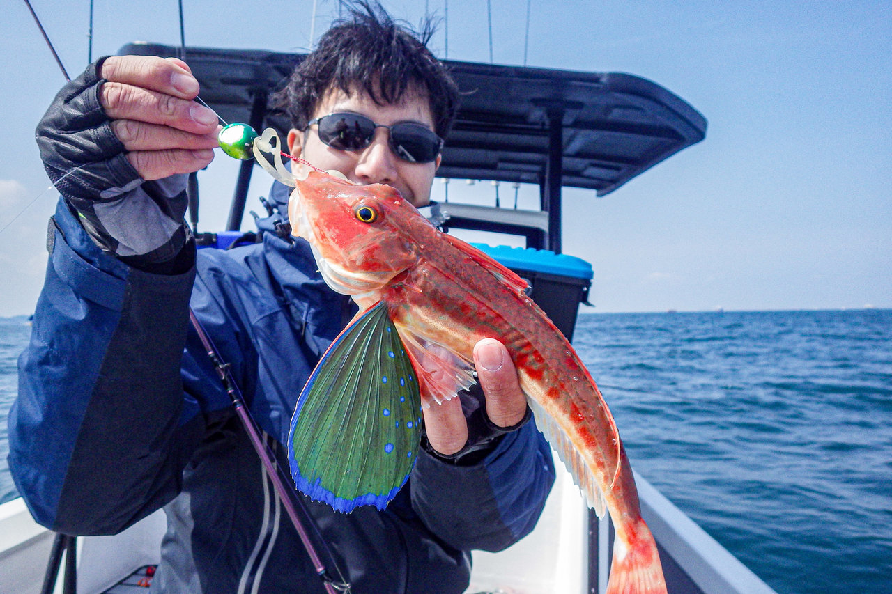 中層よりボトムでのアタリが多く、わたしは真鯛よりホウボウに好かれていたようでよく釣れました(笑)