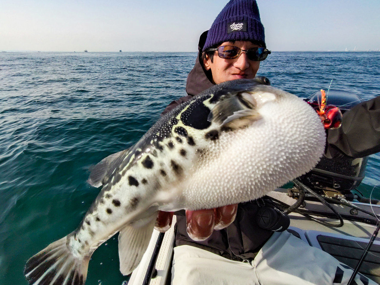ベタ凪、ゆる潮の状況、35グラムをスビニングで遠投して、沈めてマキマキ。ティップランのタックルがこんなところで活躍するとは(笑)。仕上げは2キロ近いトラフグまで釣れてくれて、ワイワイ賑やかな楽しい便になりました!