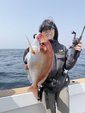 私にもこの日の初アタリがあって2キロのマダイキャッチ♪