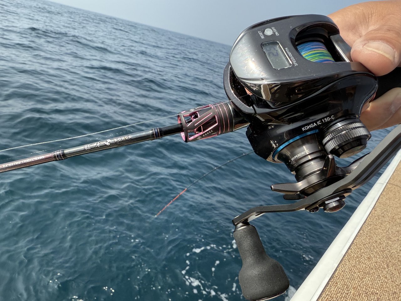 今回はロッド・リールを新調。ロッドは前モデルの「L」を使用していましたが、今回は「M」。「L」よりもしっかりとバットでためてくれる印象。82cm、69cmが釣れましたがスリルゲームならではの曲がりを楽しみながら、しっかりとランディング出来ました。リールはハイギアの7.1。色々紹介されている通り「巻き心地」はとても滑らか。ドラグはガチガチにしていますが、ATDなので「出るところは出て効くところは効く」。大型真鯛にも安心です♪