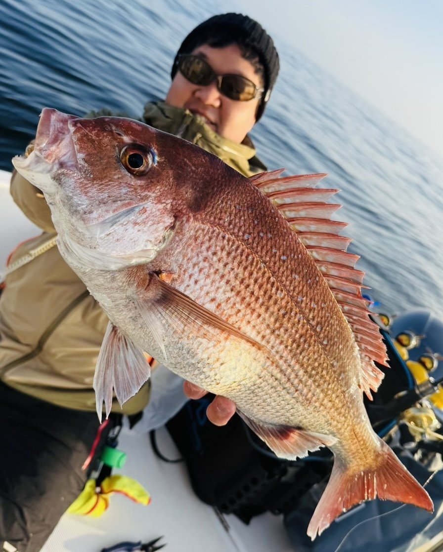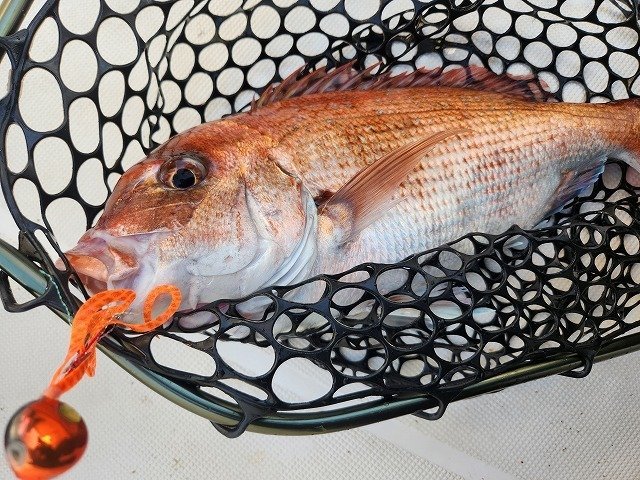 なんとそこから沈黙タイム。。流れは絶妙に釣れそうなのにアタラナイ。終了間際、スタートのマジカーリーゼブラオレンジに変更して早目に巻くと、小さなバイト。食い切らなかったのでケイムラクリアのアジアダーをトレーラーにしてもう一度同じ速さにするとヒット!絞り出せた一枚はキロなしでしたが嬉しかったです♪固まっているマダイも増えてきているのでこれから更にのっこみで楽しくなると思います。是非皆さんタイラバへチャレンジしてみてくださいね♪今年は熱いぞ!