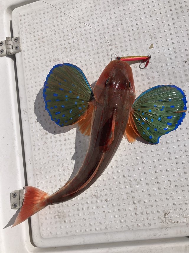 その後はホウボウに再びマダイ、最後には60cm近い巨大なホウボウも釣れました!!!
