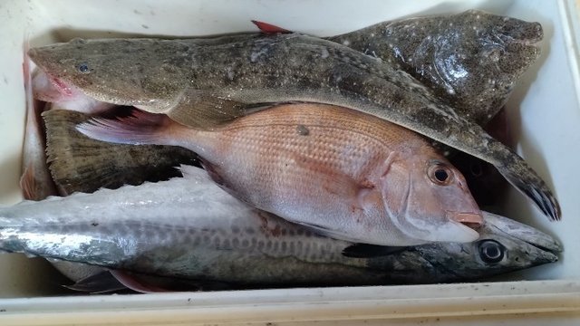 それにしても、マゴチやヒラメ(?)、アコウ、塩焼きサイズのマダイ、チャリコ多数!と